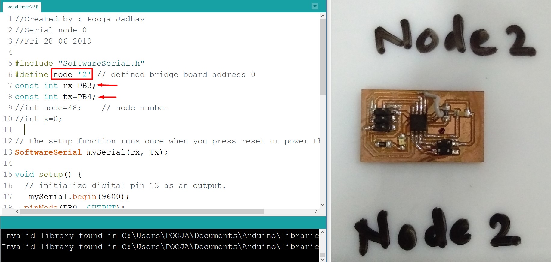 In serial monitor, When I pressed 0 and clicked Enter then Blinking LED of bridge board beacause I defined 0 Node ID for bridge board. Same think in Node board.but in Node board I pressed 1 and 2 Node ID.
