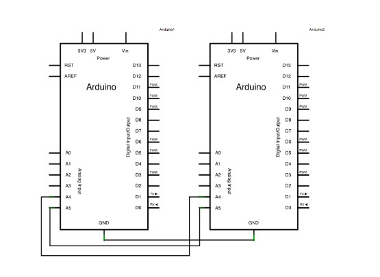 The I2C protocol involves using two lines to send and receive data: a serial clock pin (SCL) that the Arduino or Genuino Master board pulses at a regular interval, and a serial data pin (SDA) over which data is sent between the two devices.