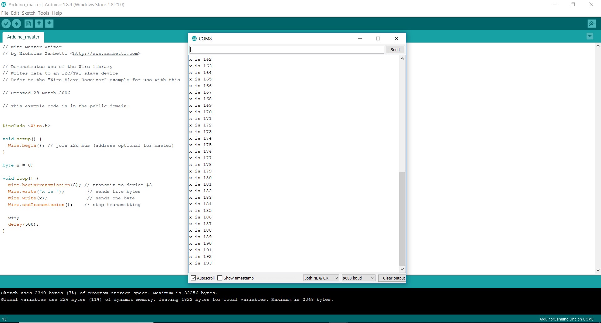 In the master we required Wire.h library.we begin the I2C bus using the Wire.begin() function. If no argument is provided in the function, Arduino will start as a master.