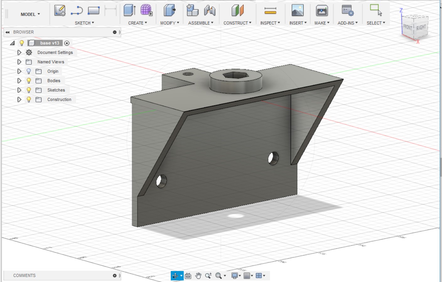 We holder our pulley and motors on circular pipes. for the pulley support I designed the base part which are fitted on 4 pipes