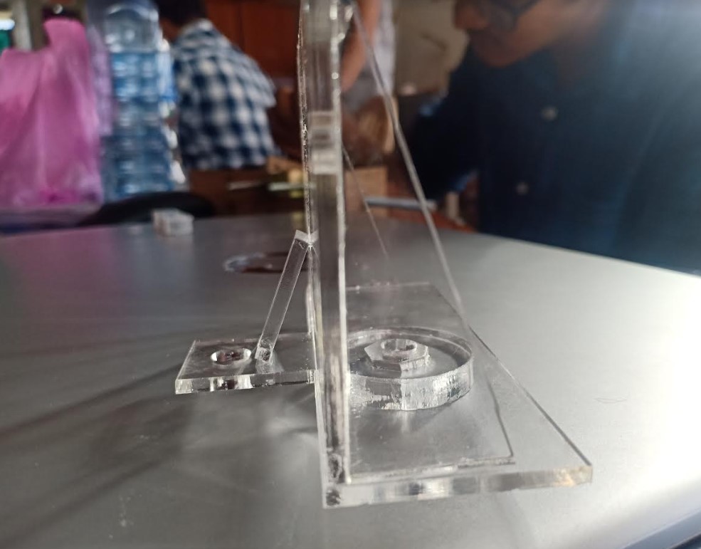 Base part took a 2.15hr time for one print. Then our instructor suggest us base part cut it on Lase cutter. that time we worried about that acryalic sheet will be able to taking load of Motors.