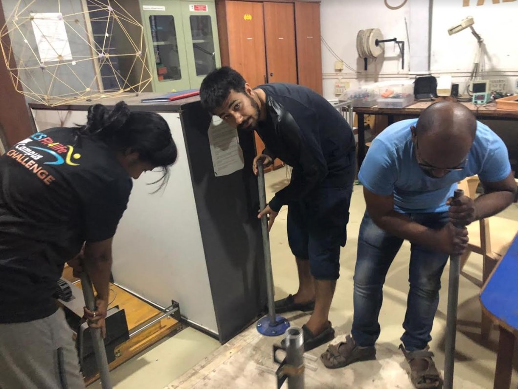 After assembled my pulley design, I help to my My colleague tushar in cutting and assembling part.our team members help me to assembles all pulleys winch it on poles.