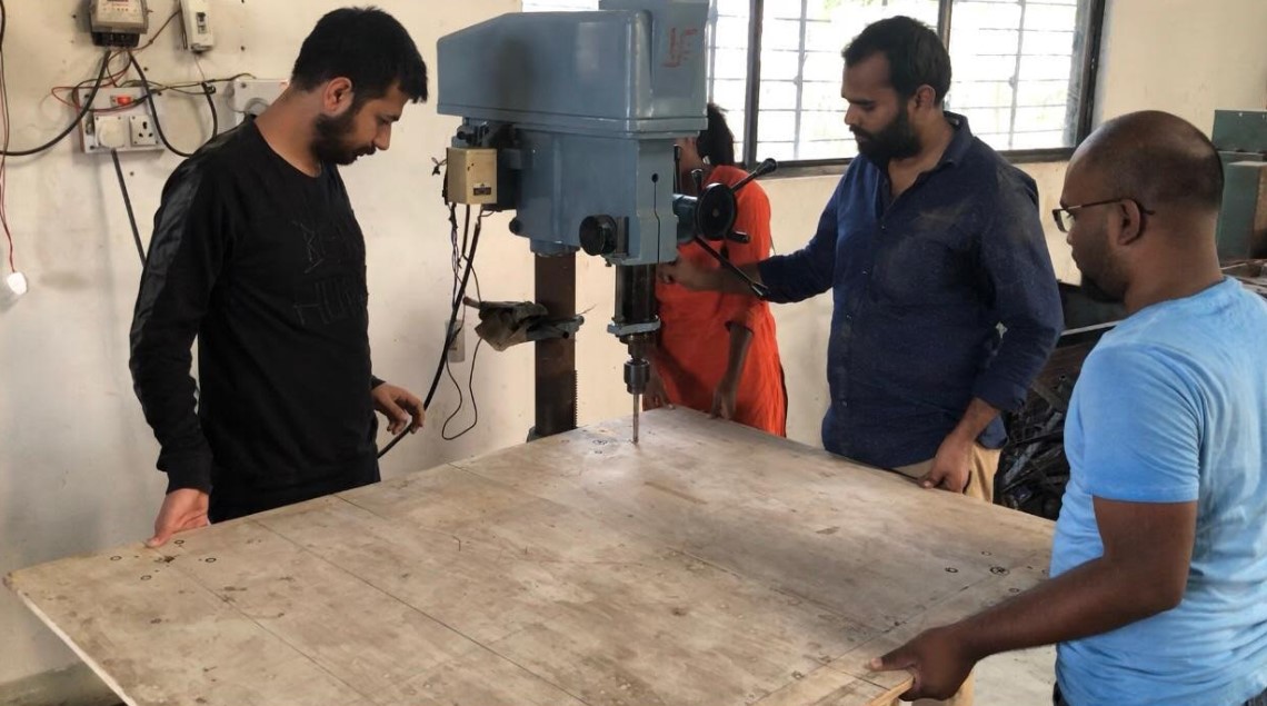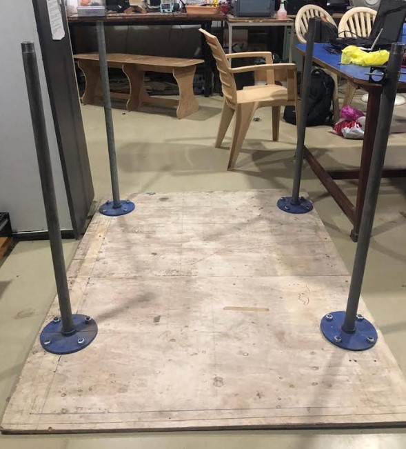 our team searched plywood. Its 3 X 3 feet.then we marking on plywood. We purchased metal pipes and flance,nutbolds
