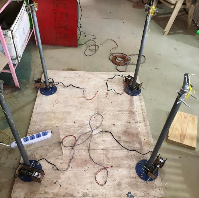 This project is inspired by FARMBOAT and skycam. We will be using 4 cable to move the end effector. We are using 4 stepper motor and winch,motor controllers in serial bus to achived the motions.