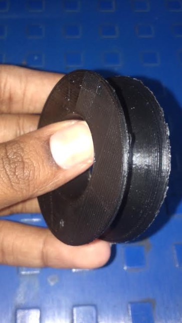 After joining parts of pulley.it looks like this on pole.but we have the problem.its not move on 90 degree beacause our model is based on skycam mechansim. and one more problems understood was pulley is not roll flexibley.then I rechanged in my pulley design. Firstly I changed the dimension in rotational circle.