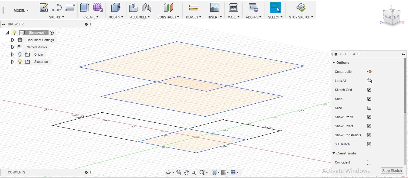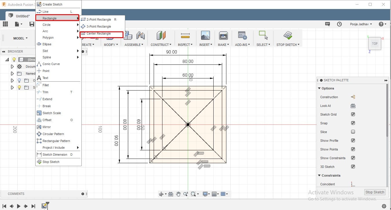 A.Pick centre rectangle tool from create sketch and draw three rectangle differ in size.