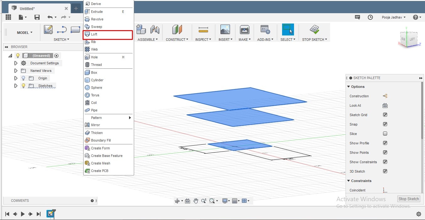 D.Now select shapes using Ctrl Button orderly and apply LOFT.