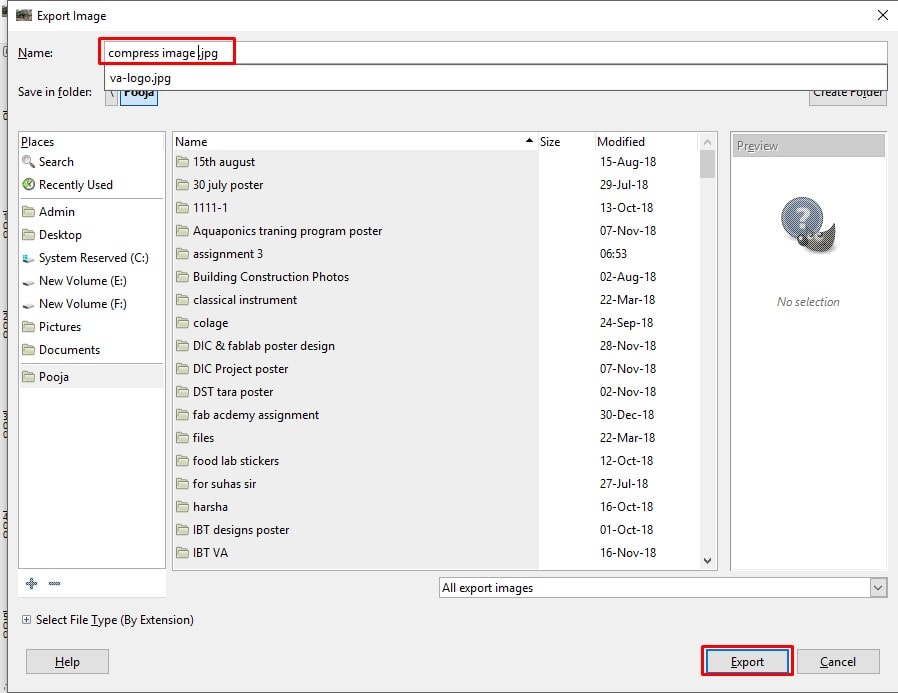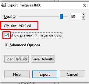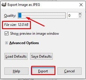 E.To reduce size of image changes it quality by dragging. Then press export.