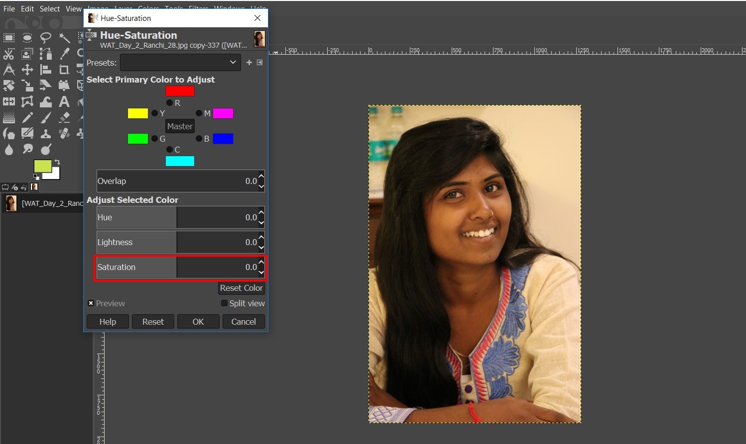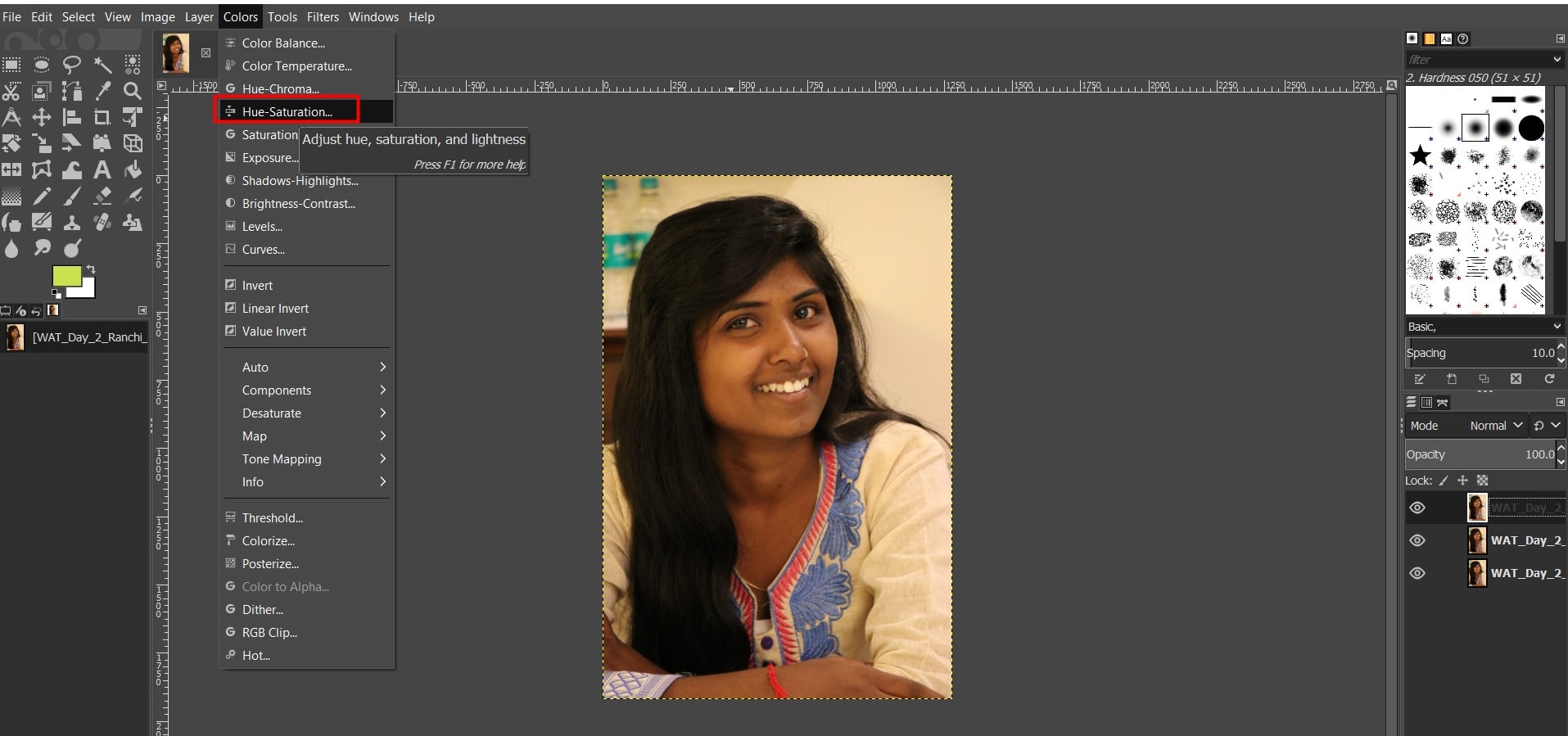 A. Open an image want to work with.create Duplicate layer twice. Then go to colors in menu bar and Selected Hue-Saturation cammand.