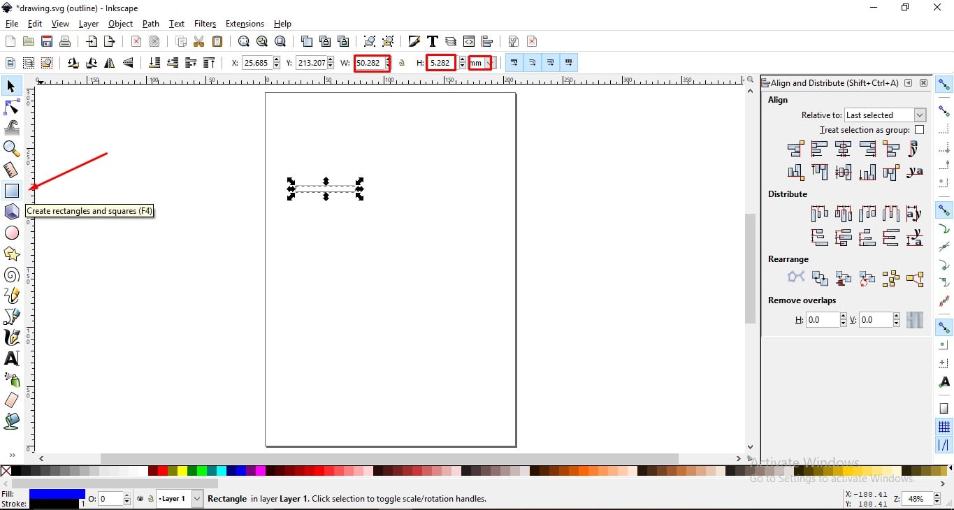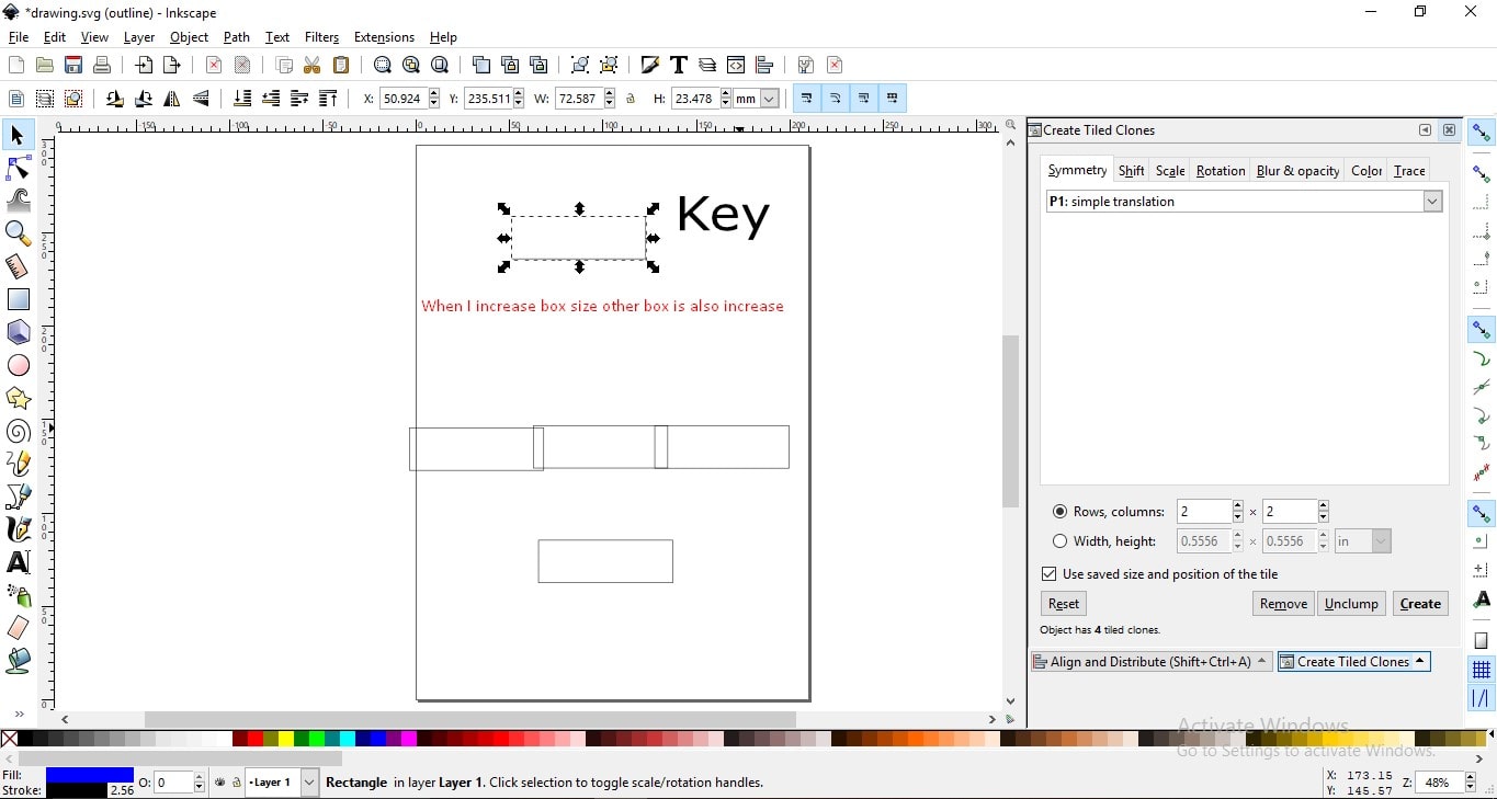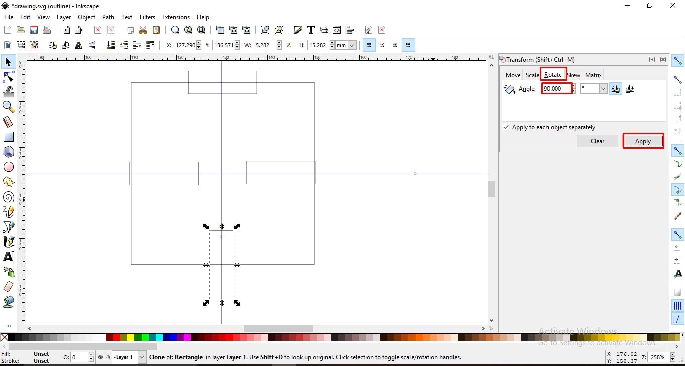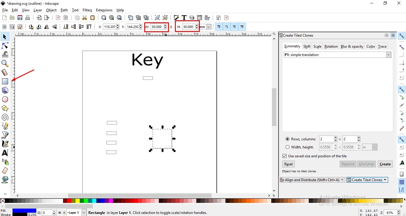 In Inskscape, I began with making simple parametric. Start from drawing simple box to parametric.