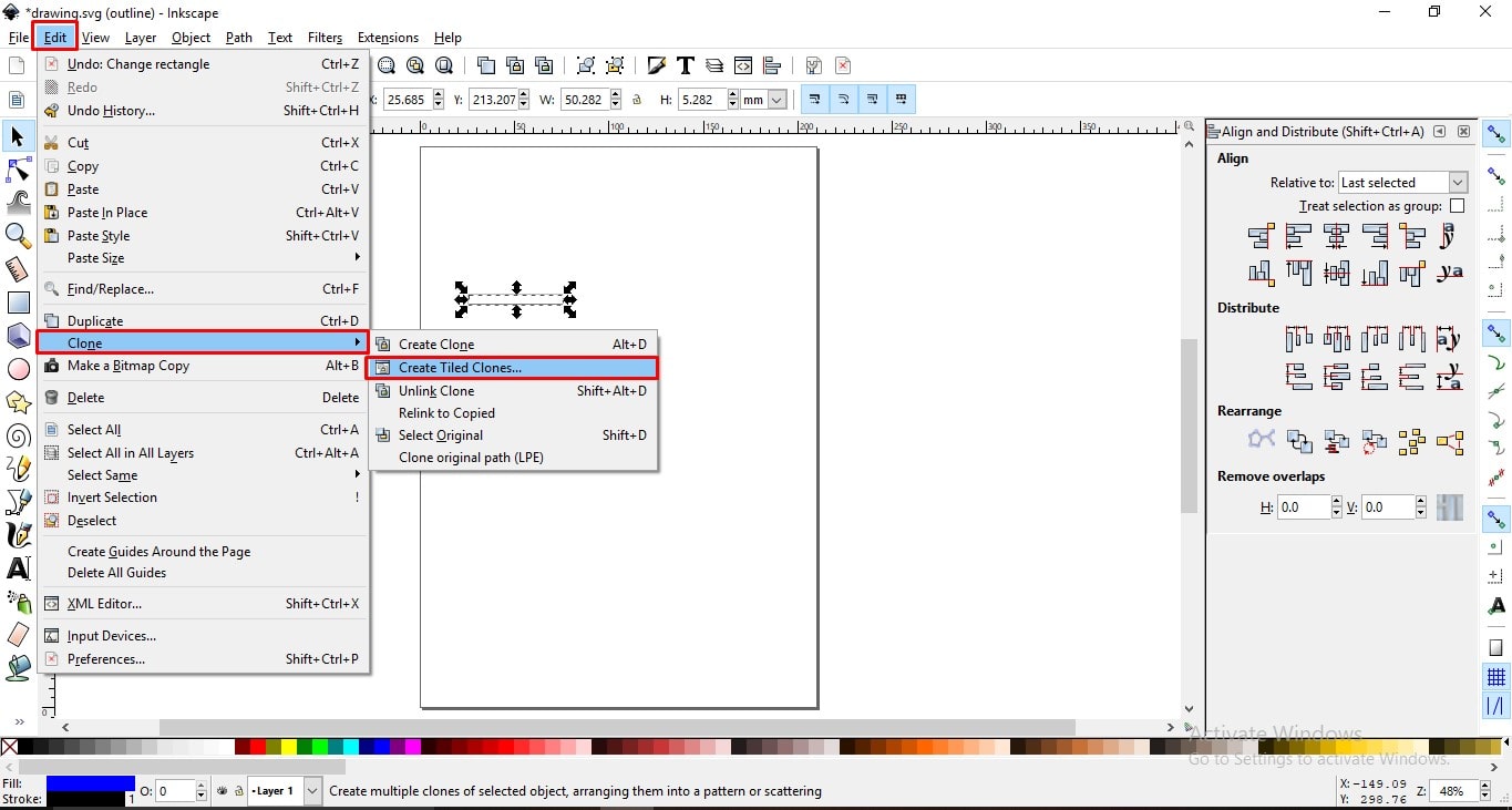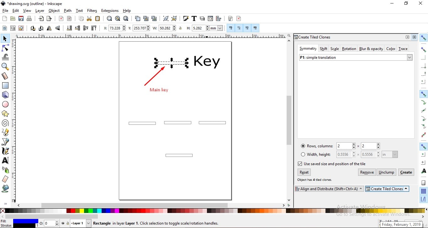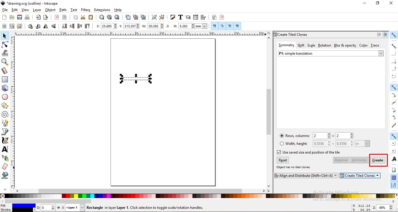 In Inskscape, I began with making simple parametric. Start from drawing simple box to parametric.