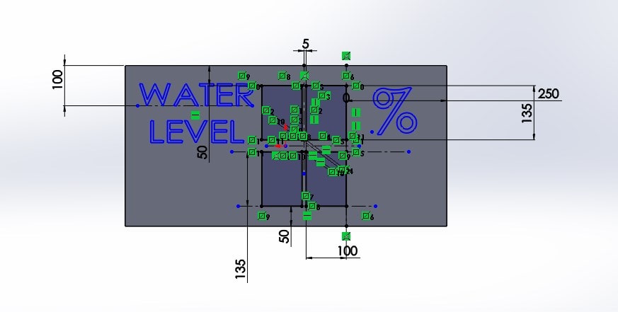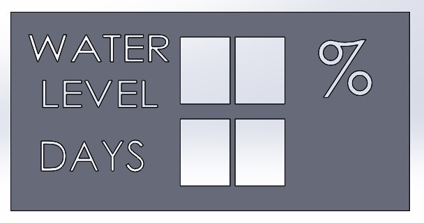 C.Use Mirror Entities command to create three more same shapes.once more use text tool and write Water Level and days on front plane box
