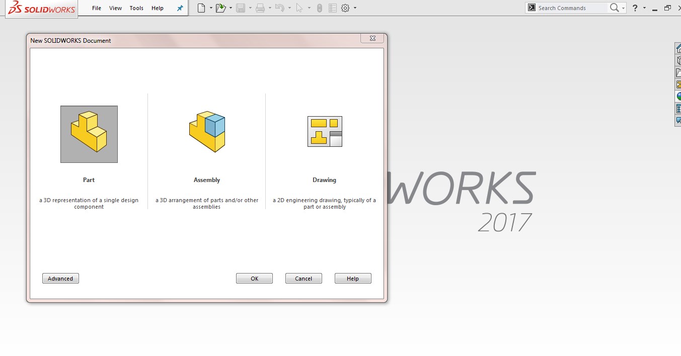 There is a three things Part , Assembly , drawing. I choosed Part.beacause my design in different parts.