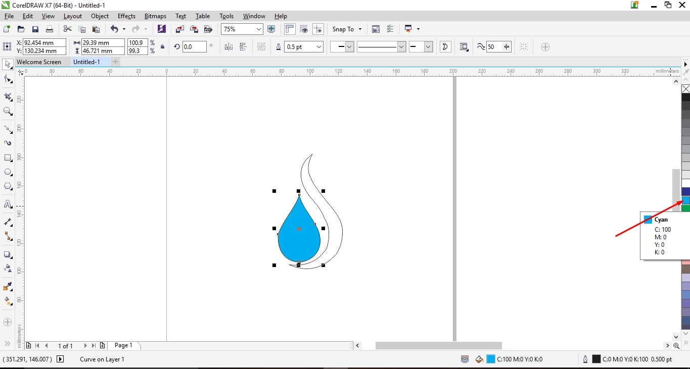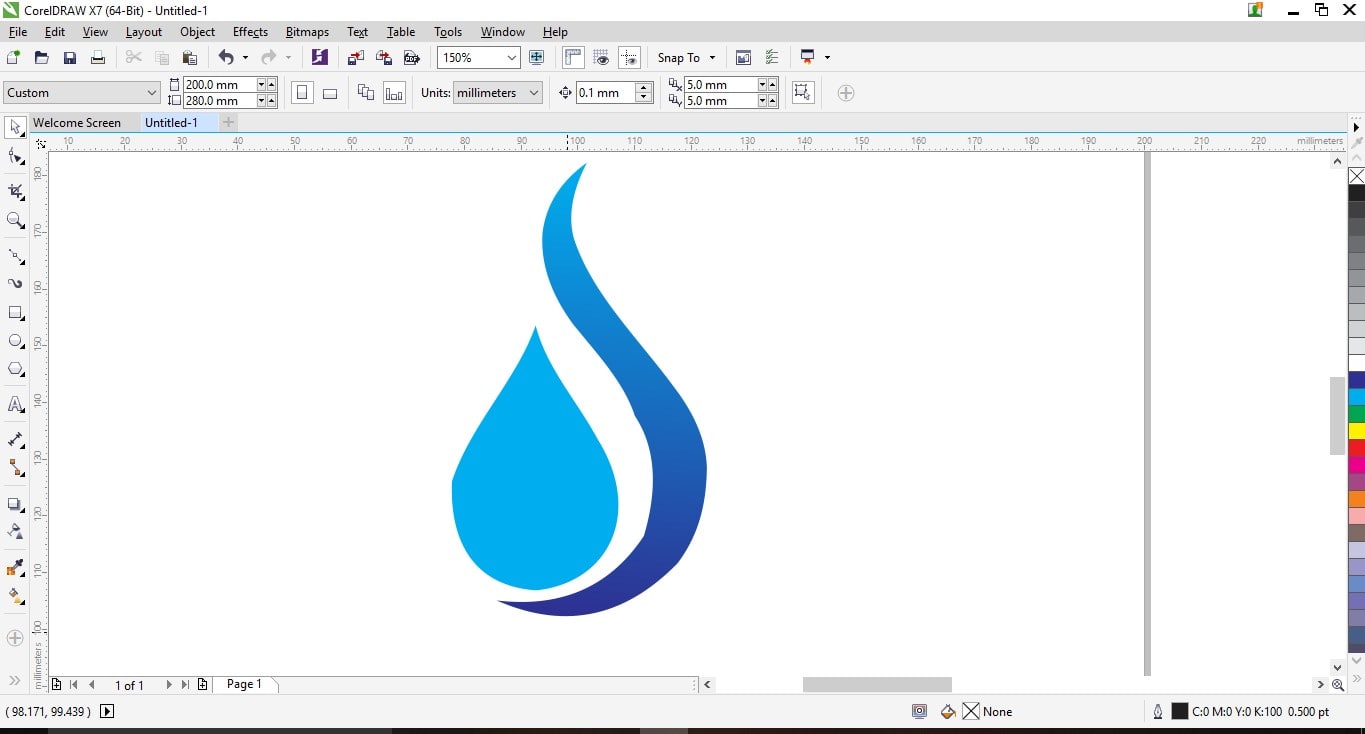 1.I Made a my final project design in Corel Draw.I did step to make water symbol using shape tool.