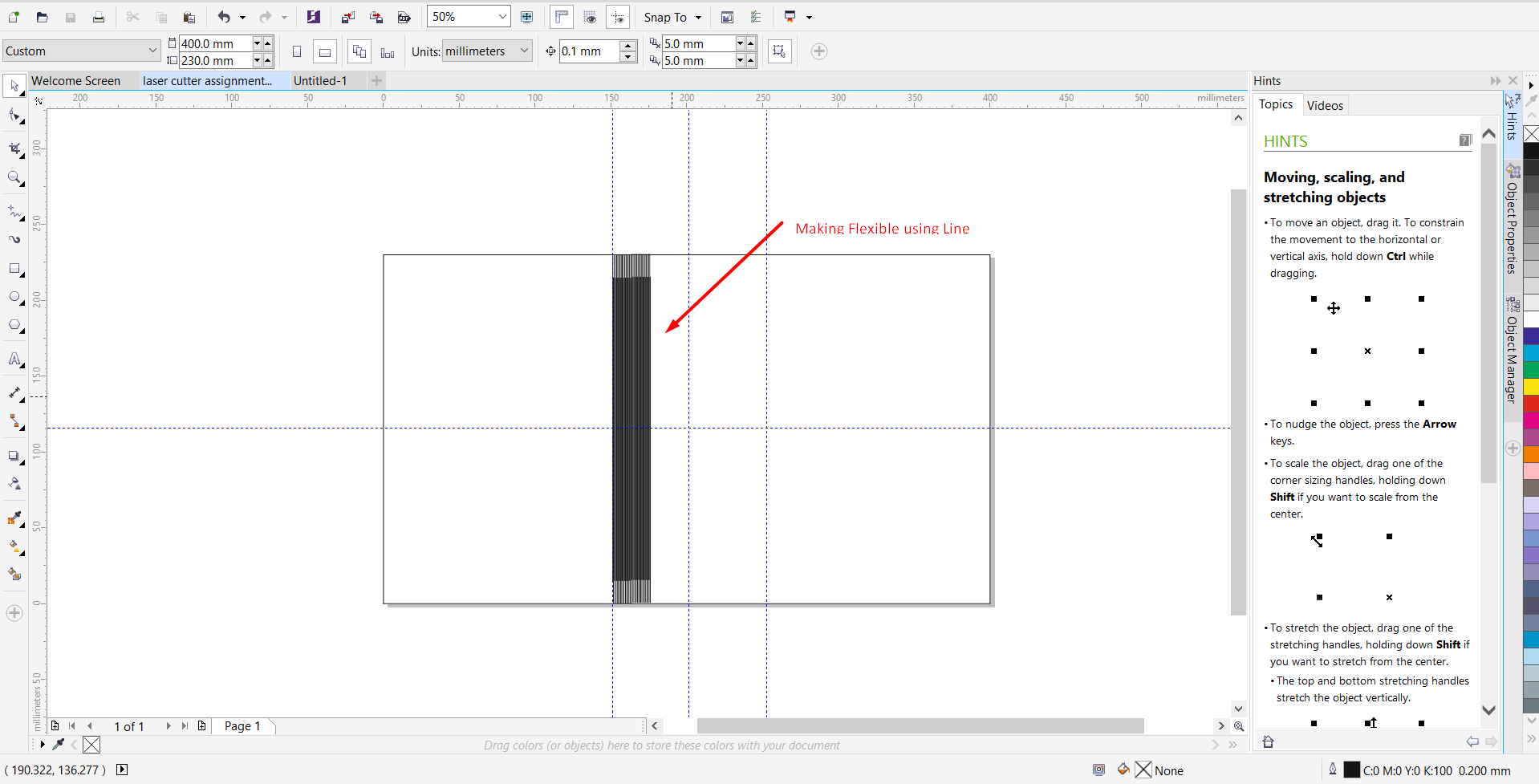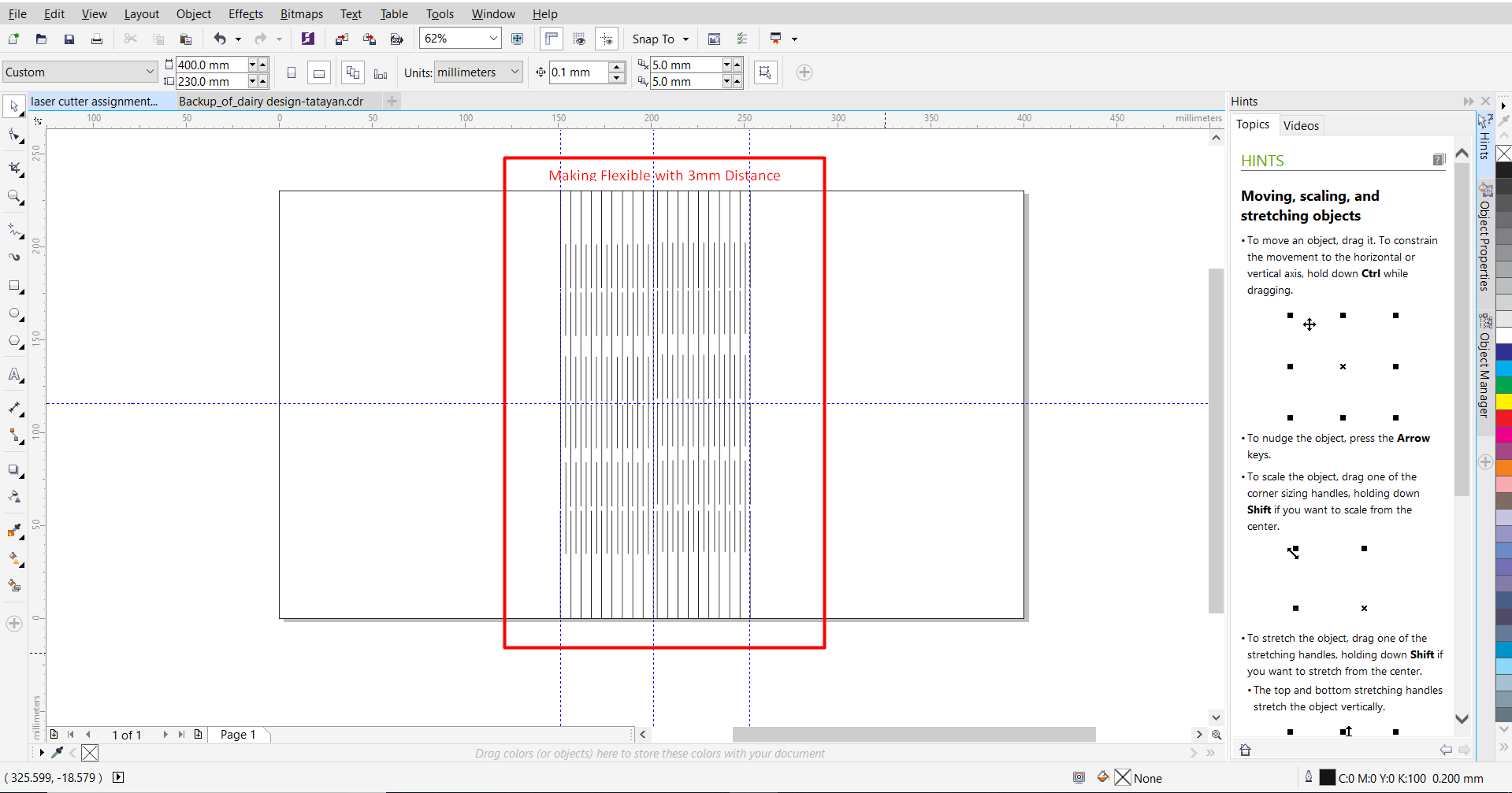 We decided to split up into three groups.til now I had this laser lot of time, but never calculate the kerf. So, we decided to check kerf for Cardboard with different power and speed.