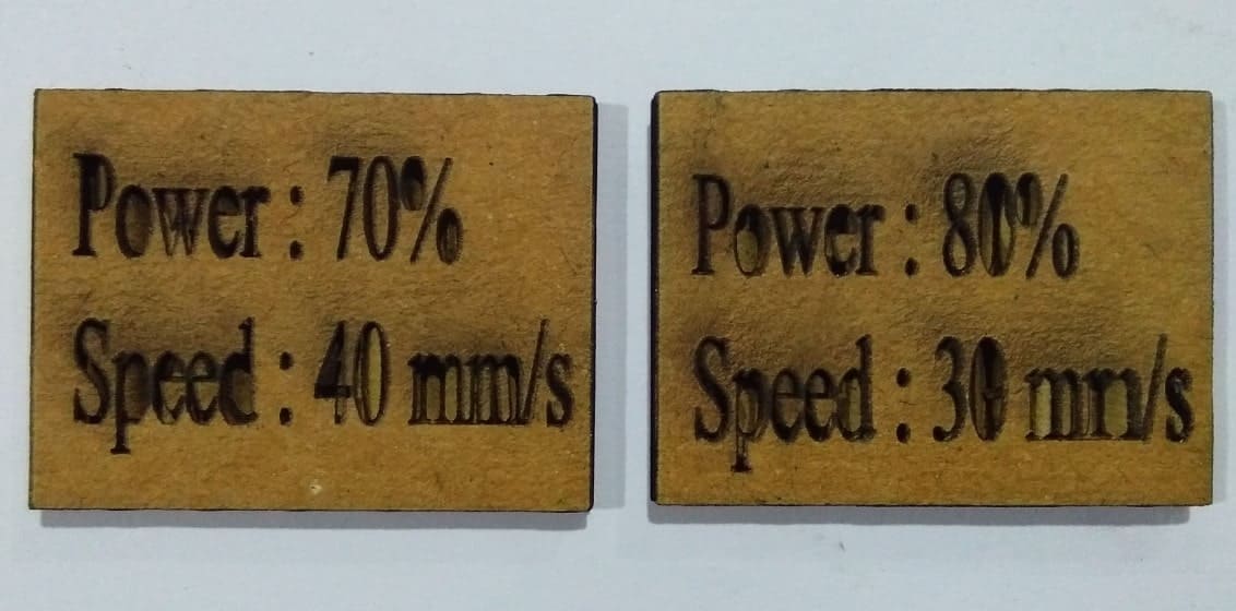 Check kerf of each part and sides.two Object was not cut properly because of low speed and Power.other two are well cut.