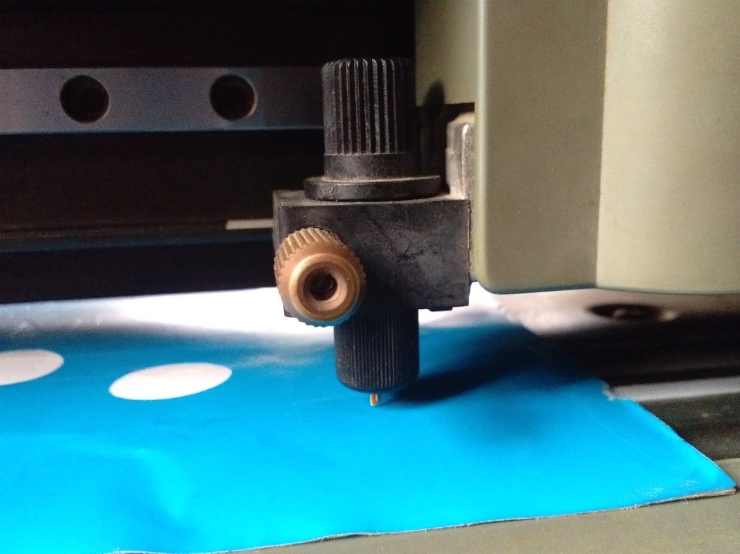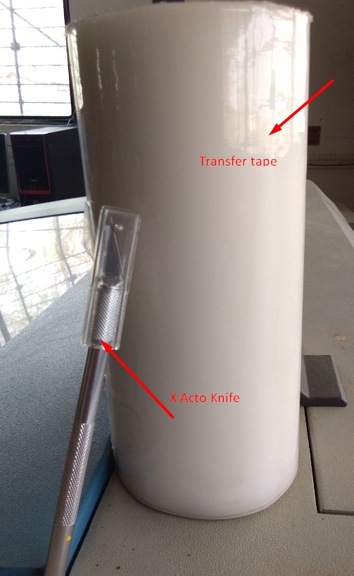 E.Turn ON the vinyl cutter. set the origin by pressing the "Origin" button.upload file to a vinyl cutter.After cutting is done remove a vinyl paper from vinyl cutter and removed unwanted parts.