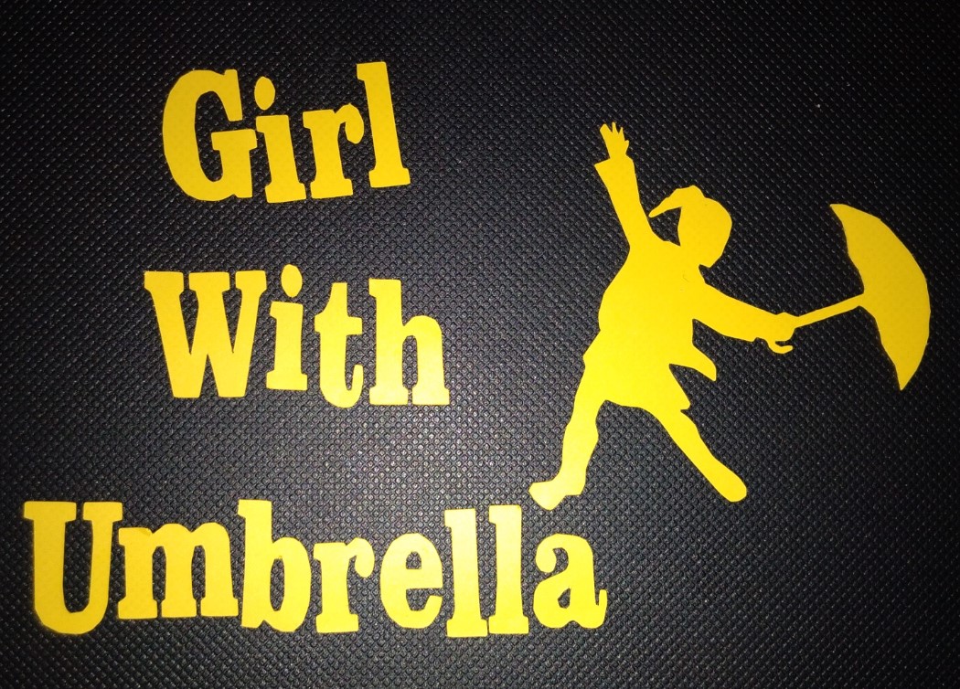 F.Next I downloaded Image of girl with Umbrella and edited it in Corel Draw.Added a text " The girl with Umbrella" and cut it on vinyl cutter by same process.
