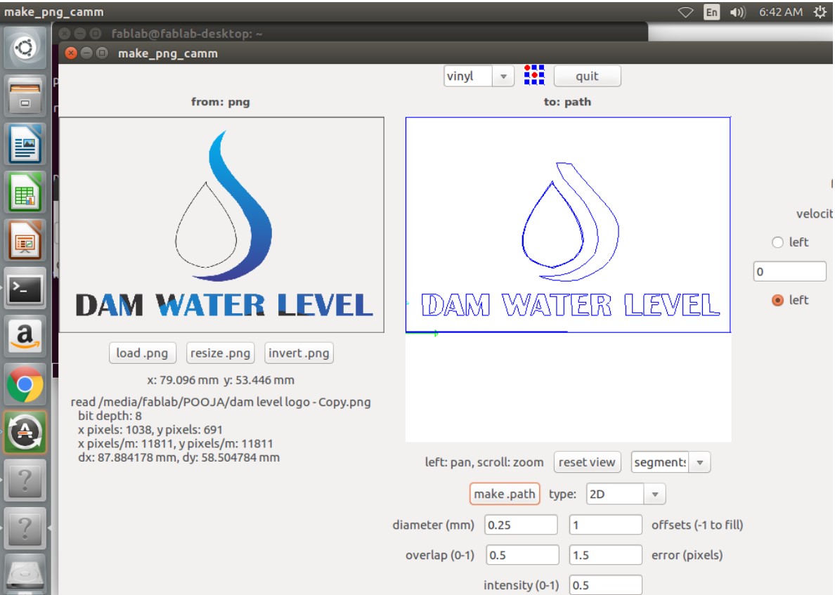B.Then selected image(.png) and Roland vinylcutter(.cammm) then click on make_png_camm.