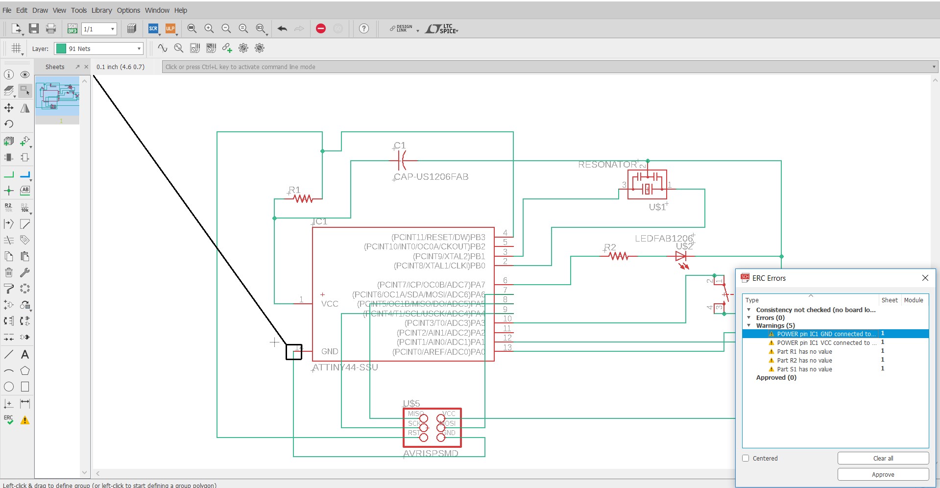 Before switchig to board we have to take an ERC, this is a check which will give us warnings and errors related to the elecrical connections.