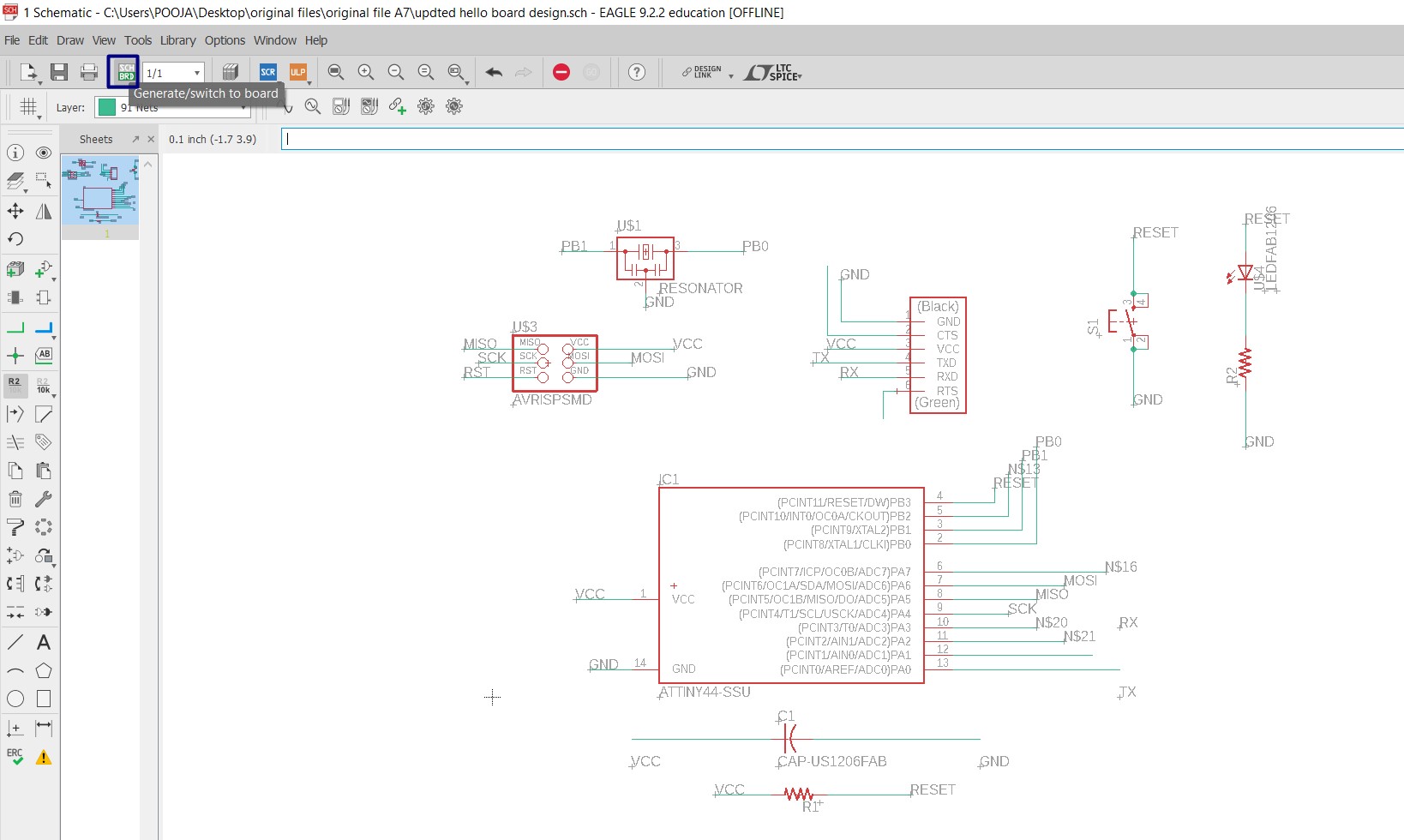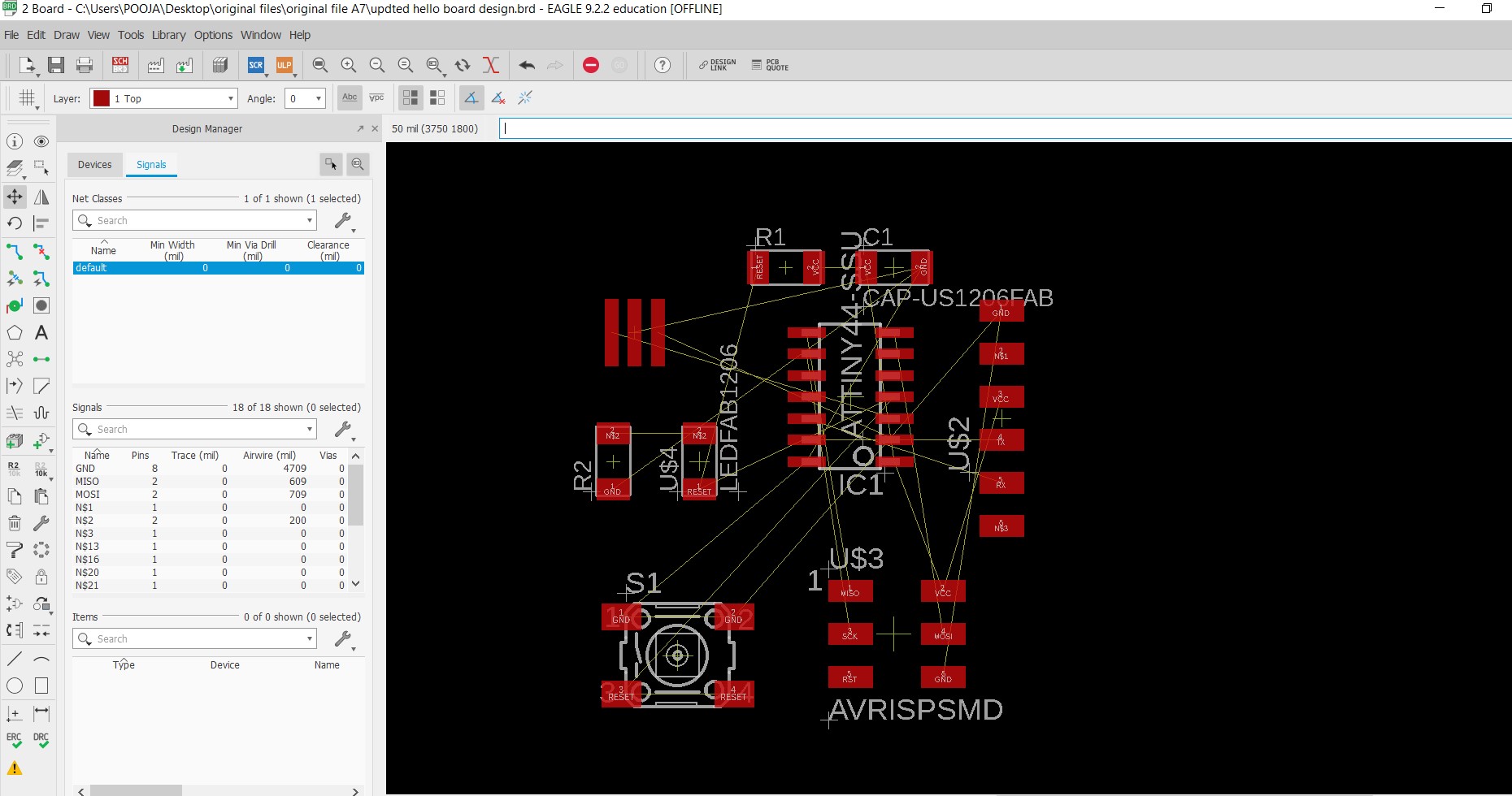 In this assignment, firstly I learn the Eagle software for circuit designing. I choose Eagle because it has user friendly interface.this was really new for me.I enjoyed this assignment for sort outing errors and all.