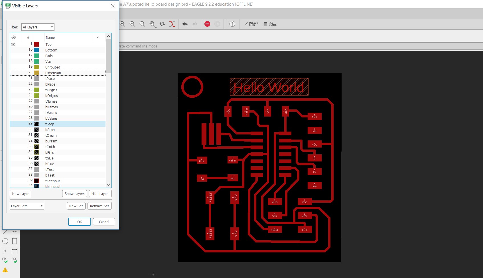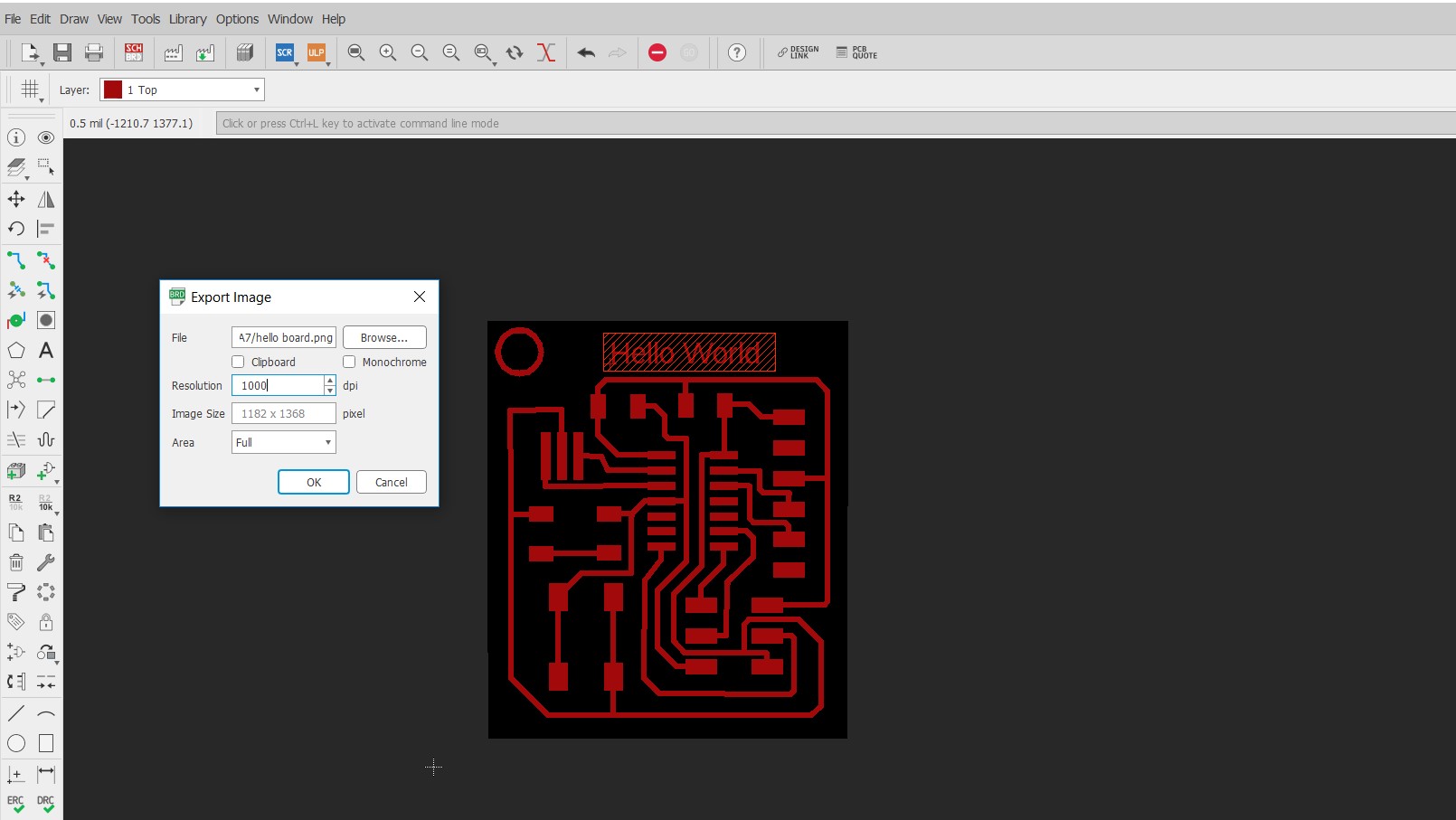 click on layer settings and adjust the dimension layer according to PCB we want. Now we have to save seperate .PNG file for Traces and border. For traces in layer setttings select the Top layer and deselect all other layers.