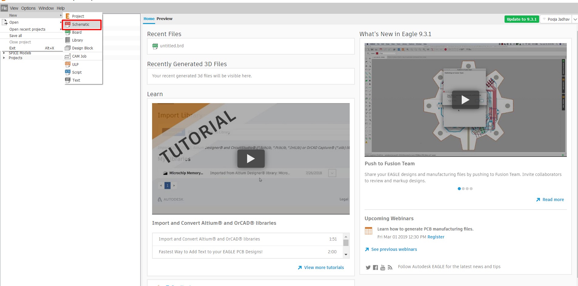 1.I opened Eagle.clicked on New and selected Schematic.