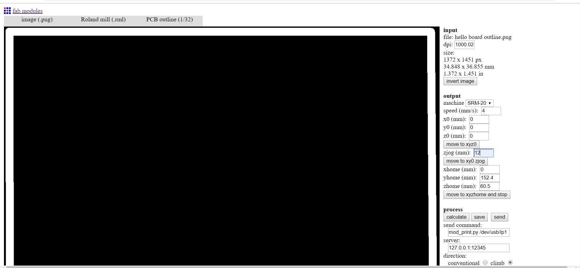 I have .png file which I loaded in fab module and for trace I changed the endmill i.e 1/64 and 4 is offset.