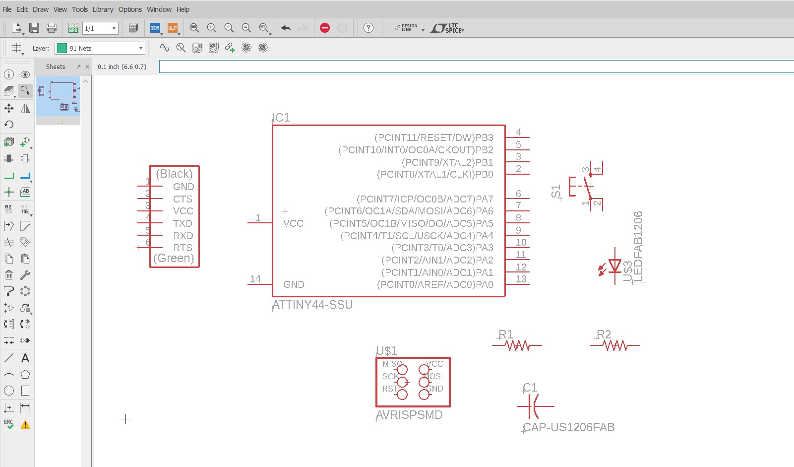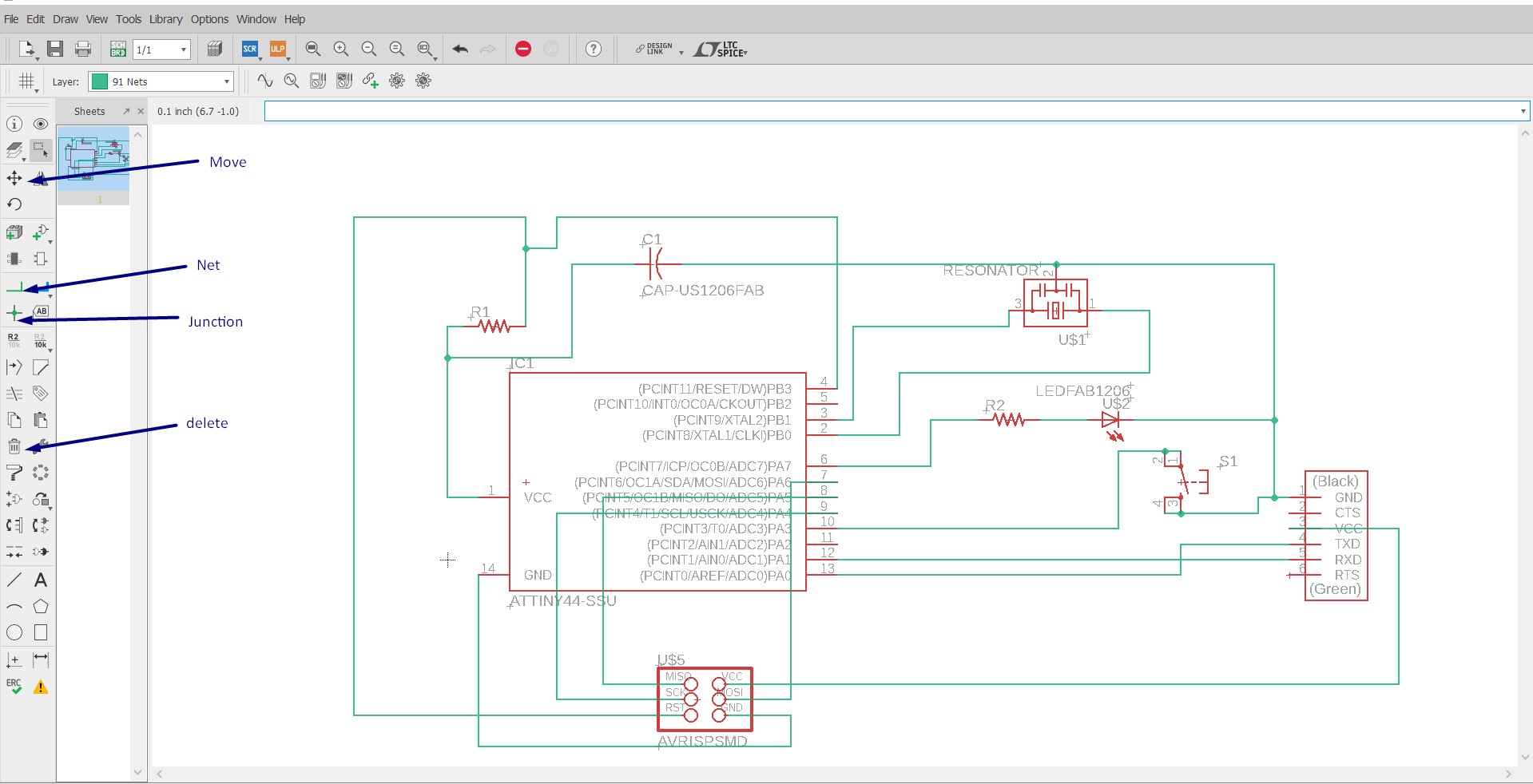 Our instructor Mrs.Supriya kadam was took a session on Eagle.For more learning I followed the Eagle Tutorials given on Fab Academy website and joined the extra components as shown.
