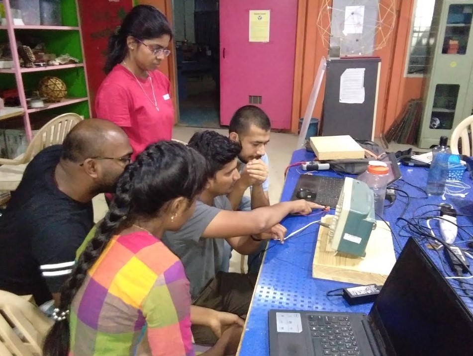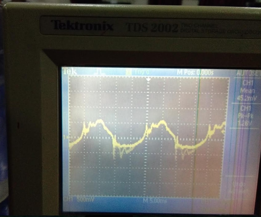 we did a simple testing using DSO, (Digital Storage Oscilloscope). We tested jaydeep's hello world board.we tested resonator on his board.We were observing the voltage curves on his board.Good soldering should give rectangular curve.