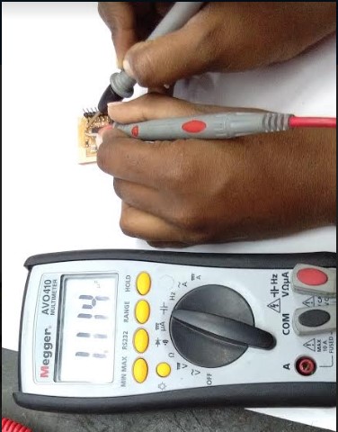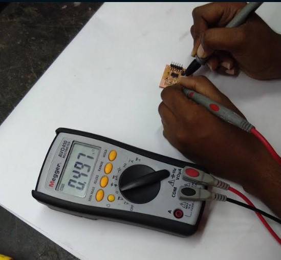 To check all Connections in Board, I check for continuity with the help of multimeter to ensure that the legs had connections to all the traces.