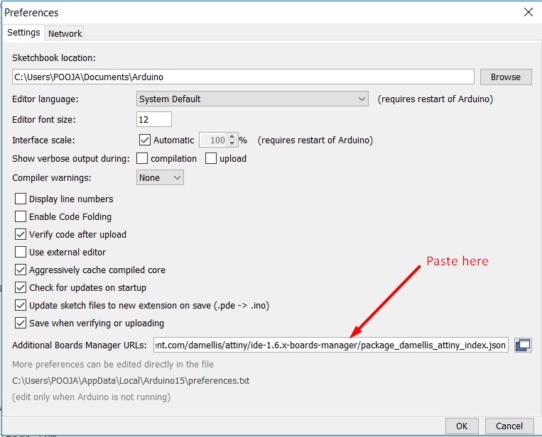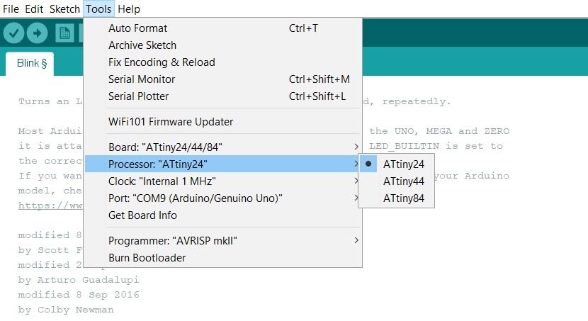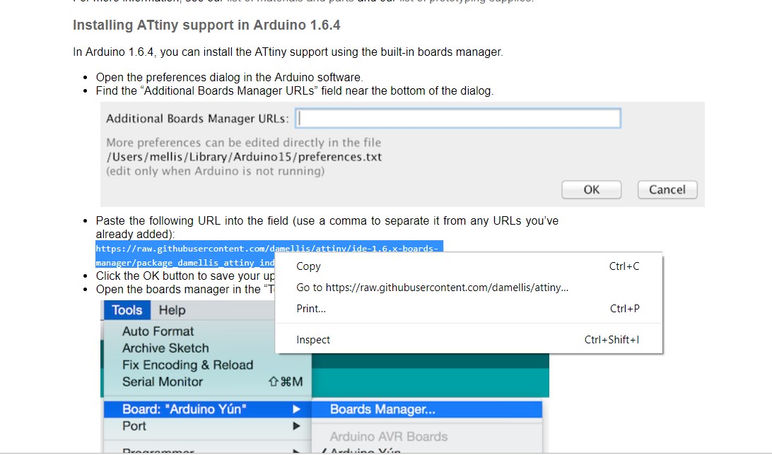 we don't have Attiny 44 as in the boards list in arduino IDE, we need to add it.