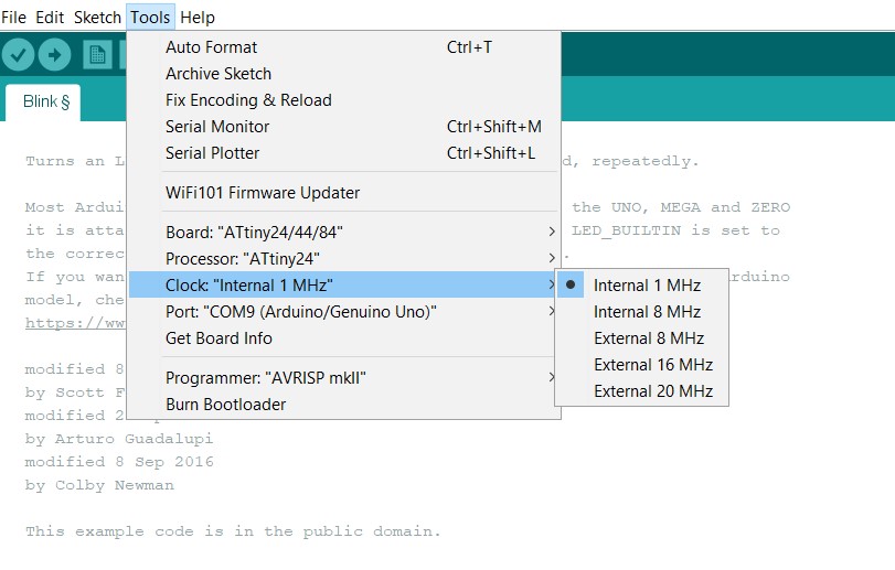 8.Select the Clock (Crystal SMD Frequency, 20 Mhz in this case)