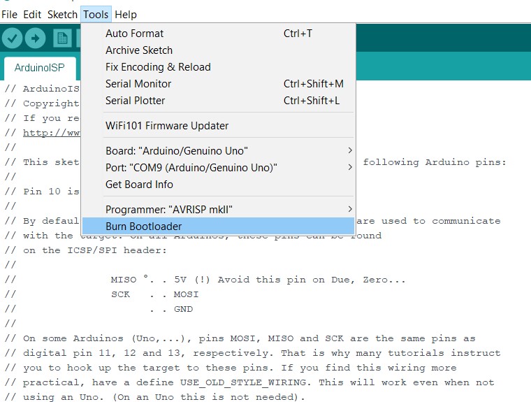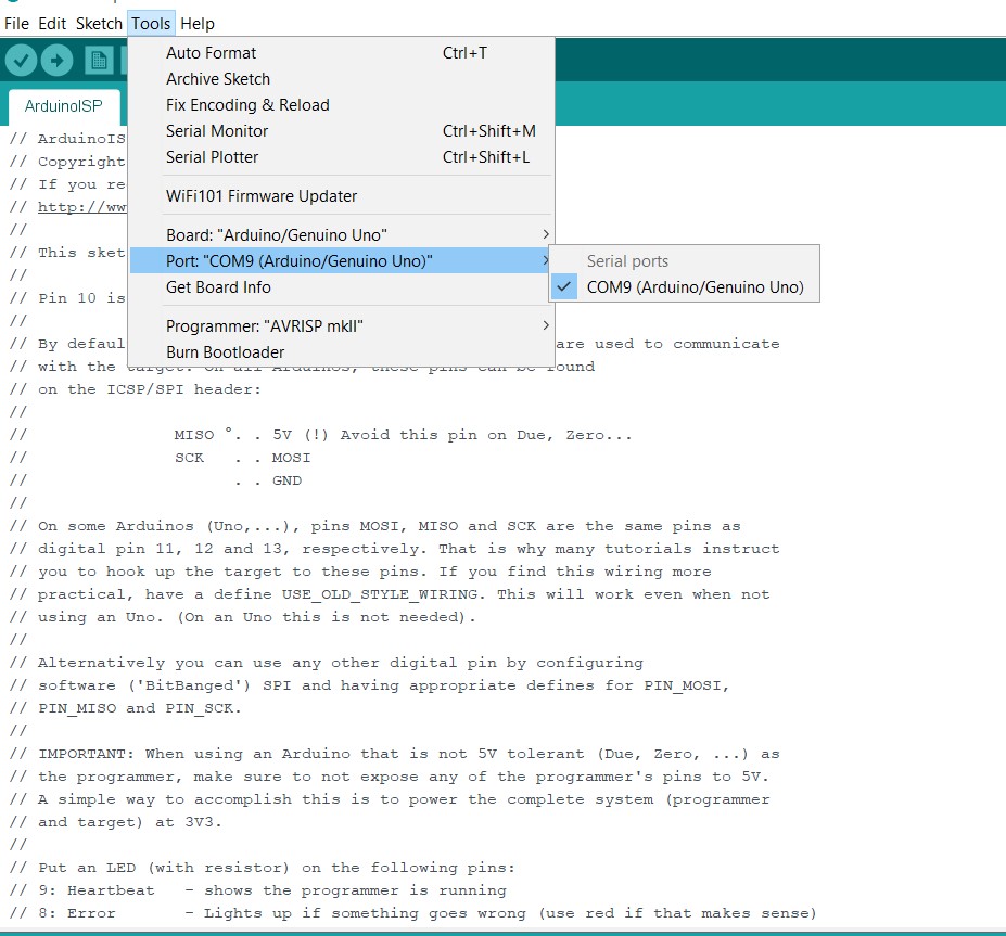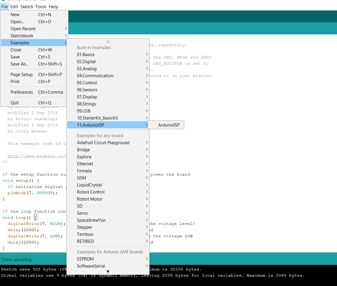 After writing I made connections and for this I used my FAB ISP to program my hello-world board.