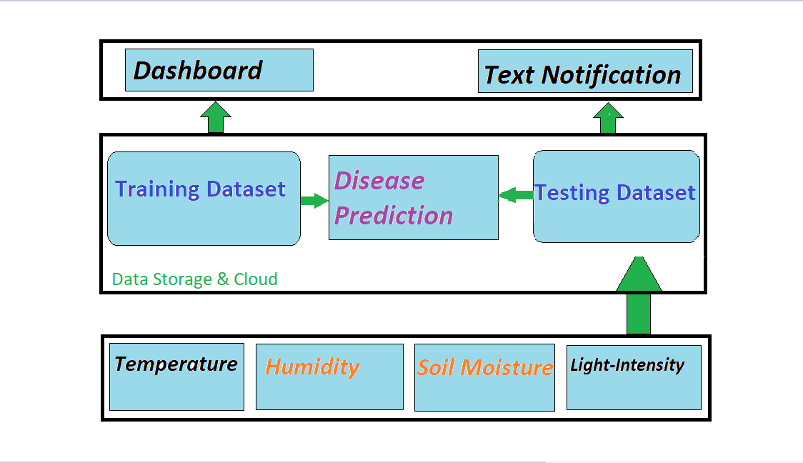 4. Training Dataset:The key component visible in the flow chart is “Training Dataset”i.e, the data which has information of atmospheric conditions in which pest is more susceptible to arrive on the crop. Yet no instution/organisation had this dataset. This need of collecting data gave birth to the project “Weather Eye”