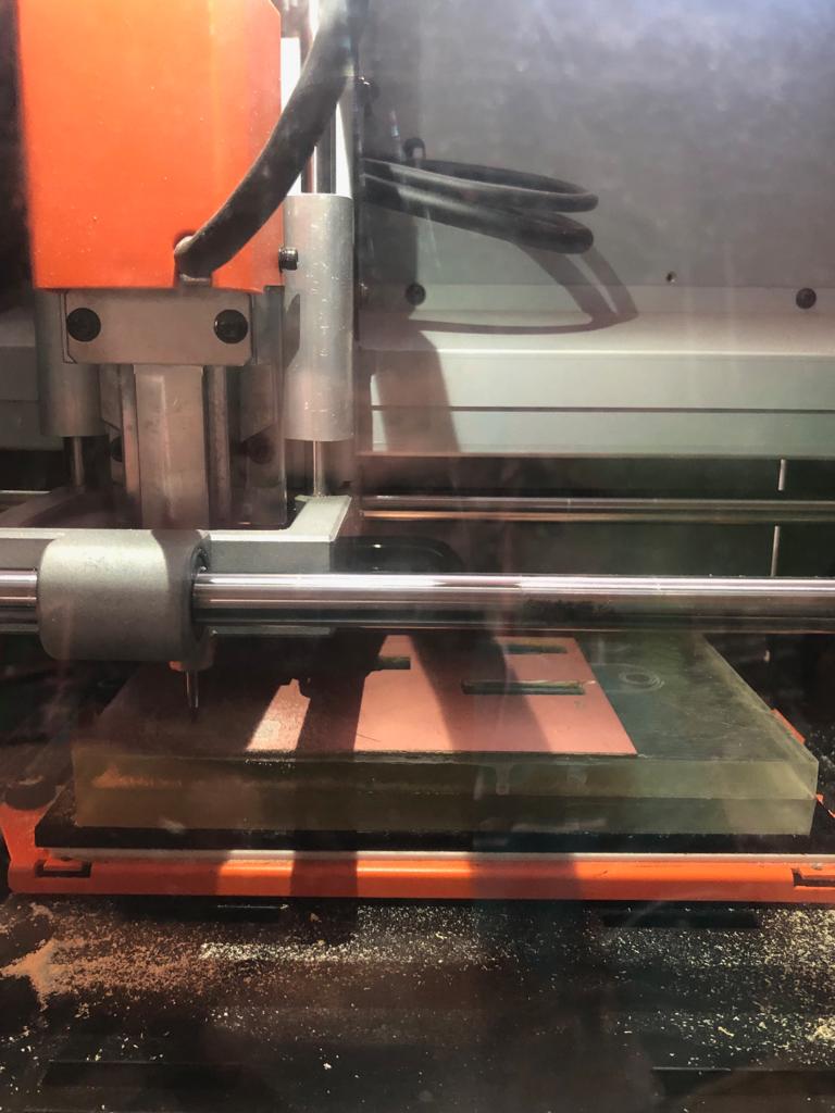 e.Opearation: The end mill moved and traced the board. The speed and spnidle value was visible on the software.