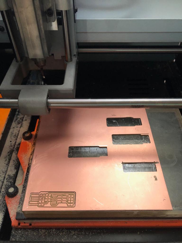 D. We cut the board on SRM-20 machine. Gave 2 commands to trace the lines of various thickness and cut the outline.