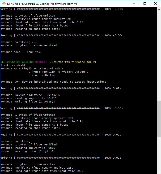 G.Run rstdisbl:I connected the ISP programmer board again and gave command “Run rstdisbl.”This made the board non-rewriteable and whch means I will not be able to write another programme on the board.