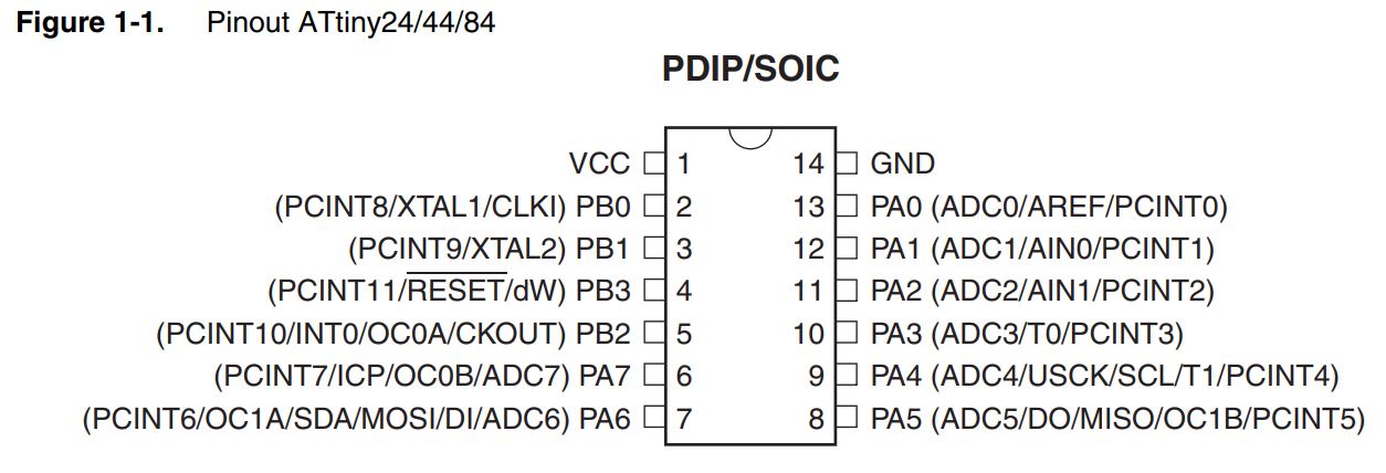 2. The ATtiny24/44/84 chips have three different types of memory: