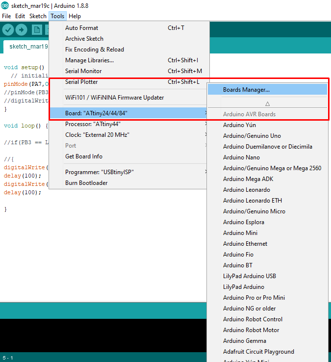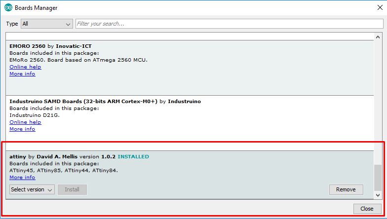 D. Installed ATtiny Boards: ATtiny44,ATtiny84,ATtiny85,ATtiny45 boards were added.