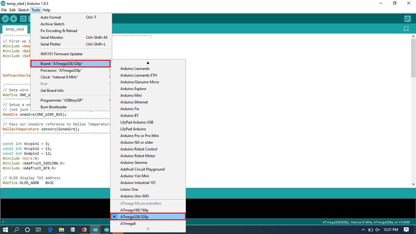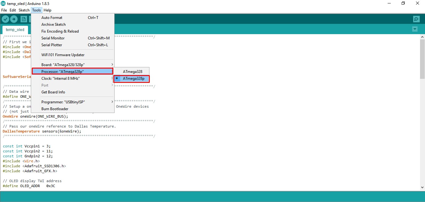 3. Processor: Specifically selected “ATmega 328p” processor.
