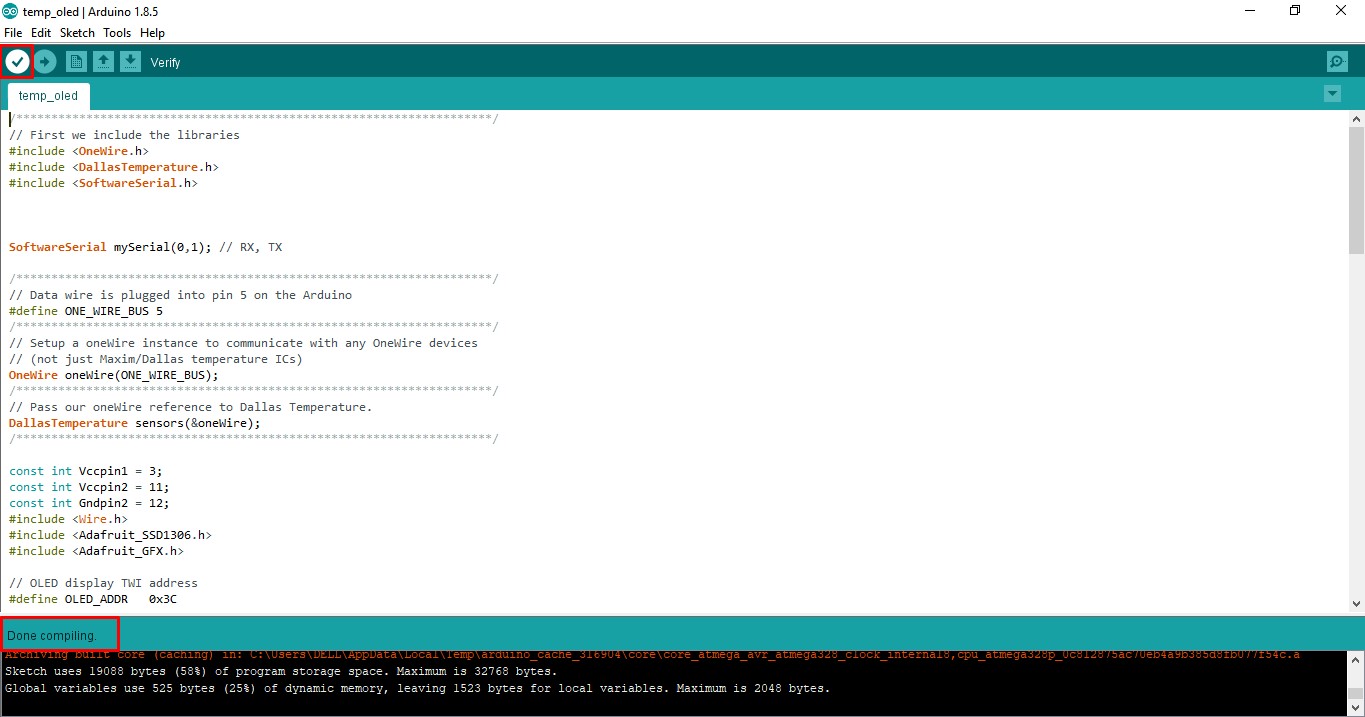4. Verify: With all these settings selected under tools section, compiled the Arduino code.