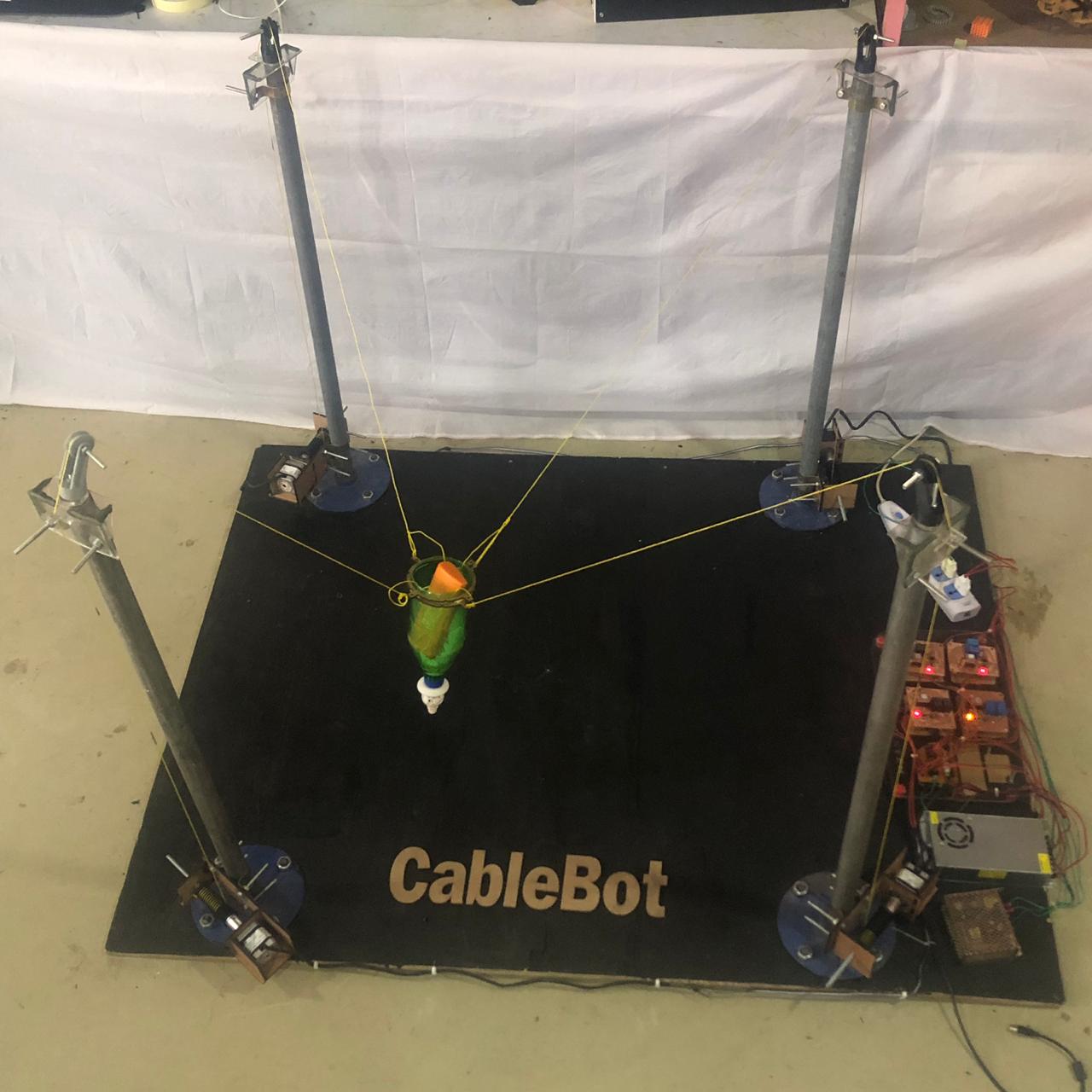 Cablebot has been made with the vision to solve the challenges of farmers with large farms. Sowing seeds, watering and other activities on large field are challenging. Our model is the first step towards automation in farming using “Skycam” principle.