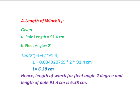b. Length of Pole: The 4 ends have pole of the exact same length 91.4cm. Thus, Tan(2°) calculates the winch length: