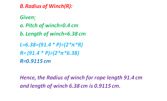 b. Length of winch: The value 6.38cm hs been calculated from above.