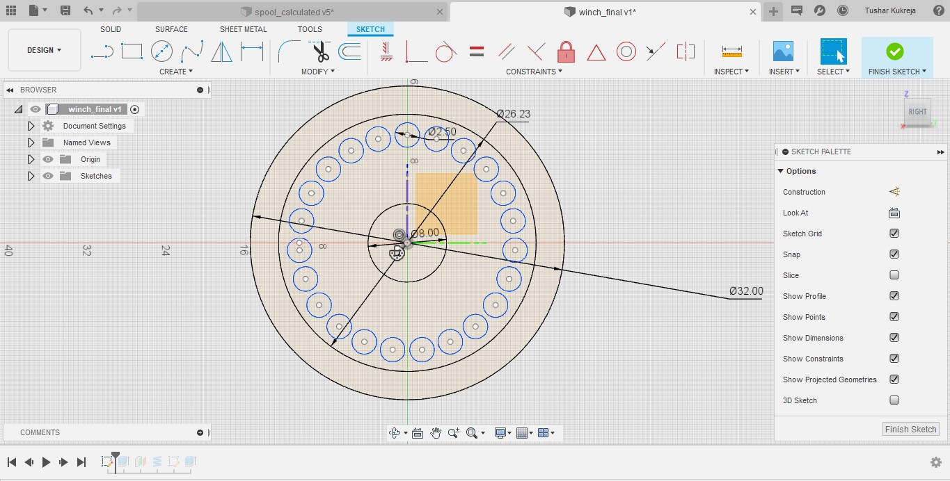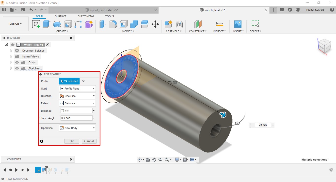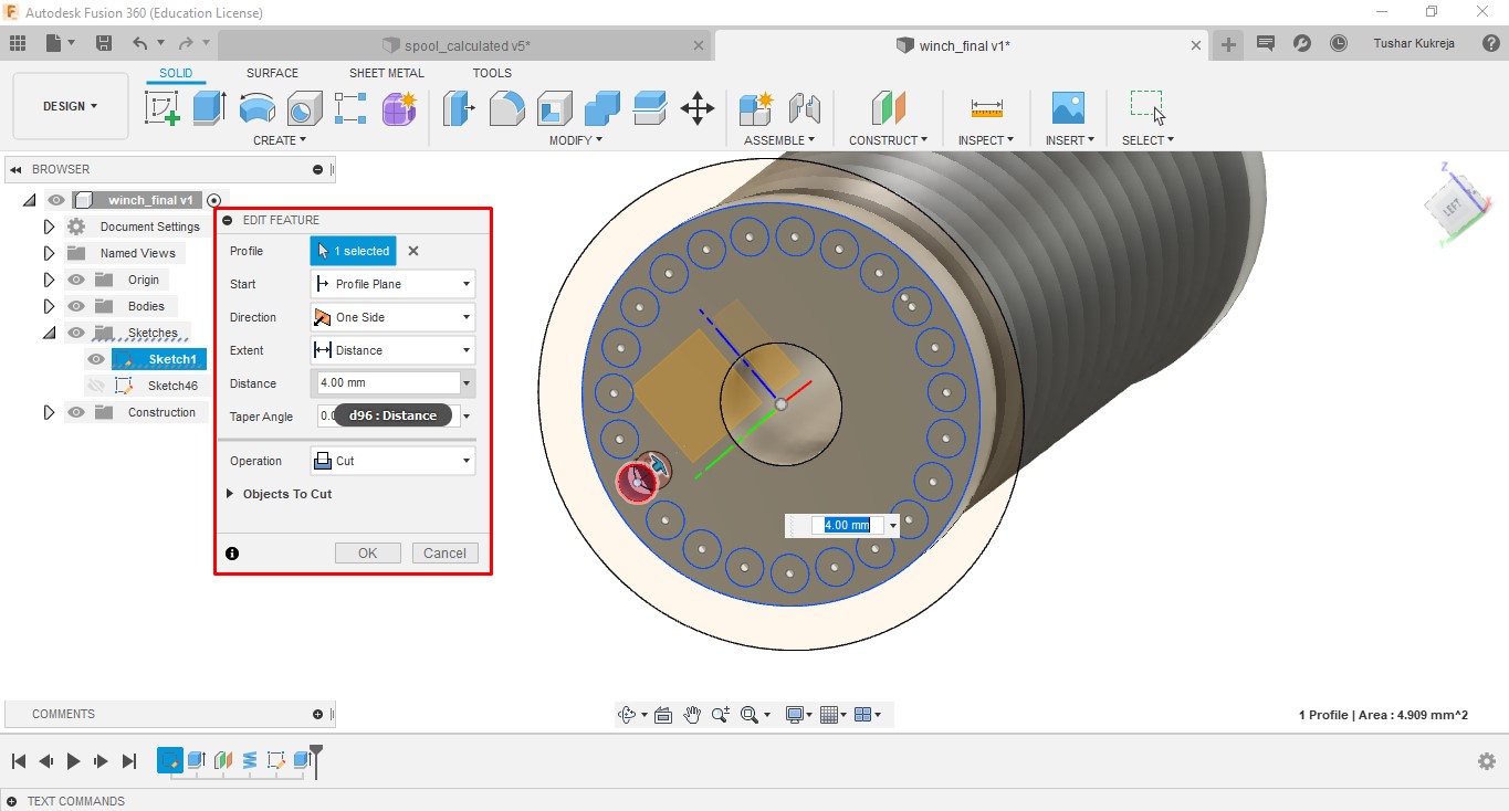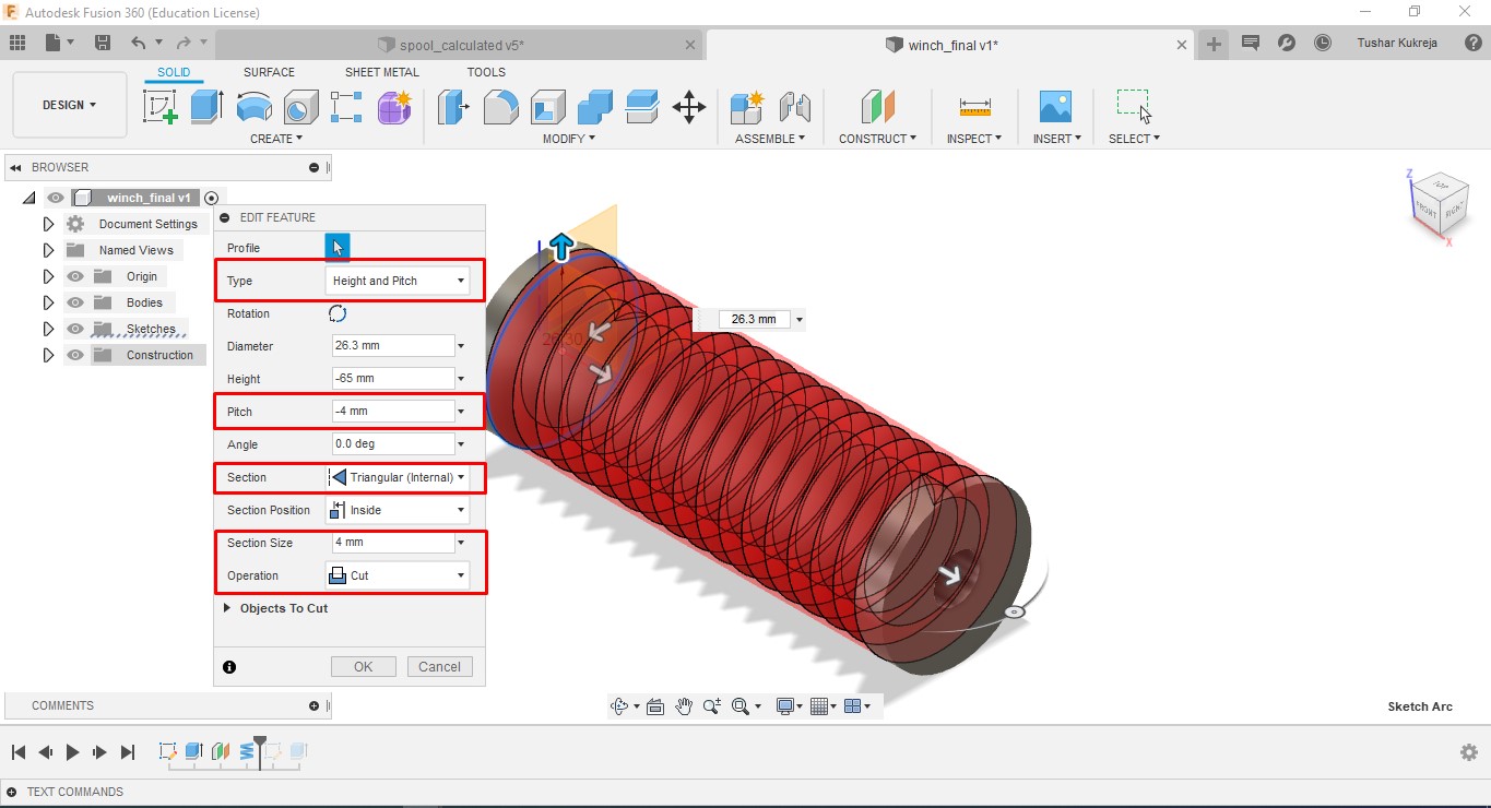 a. Pitch of Winch: in Fusion 360 we can define the pitch of winch which is 4mm in my design.