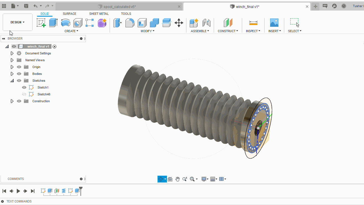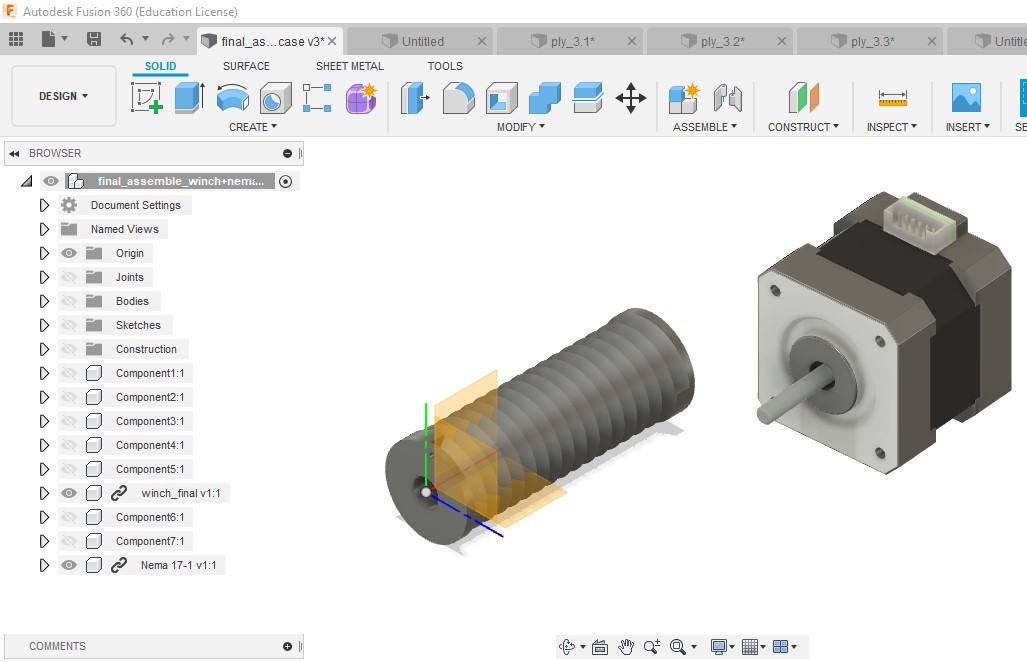 D. Insert: Thw winch designed and Nema17 was imported in the same design to be joined at various points to see the final assmebly.
