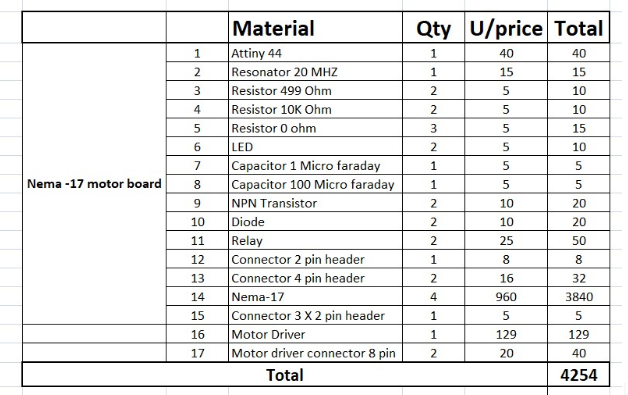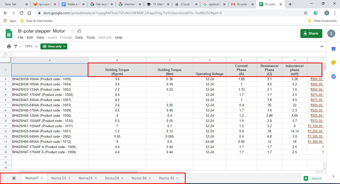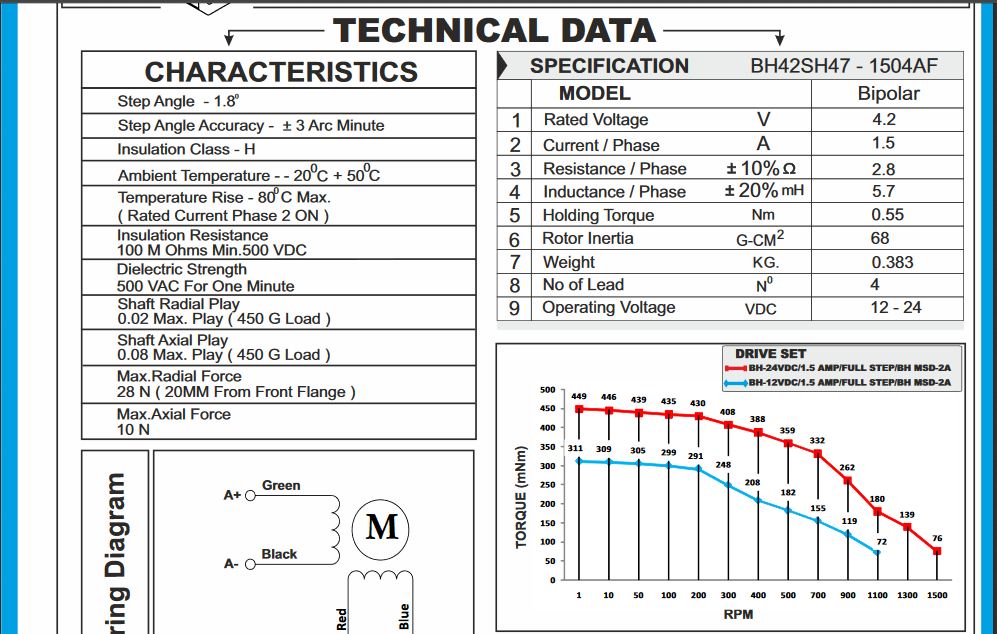 D.Nema-17:We finalized and purchased Nema-17, model- BH42 SH 47-1504 AF with following technical specificationsNema-17