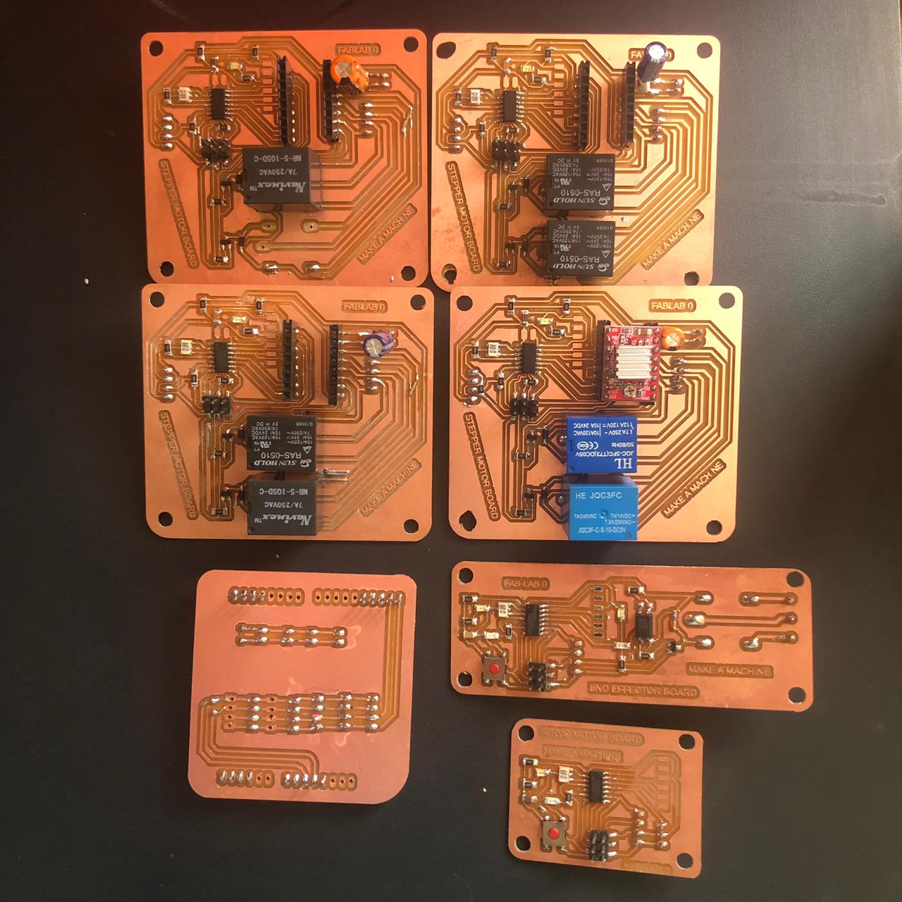 Manoj wanted to making a version of Distributed Dataflow Machine Controllers. He used firmata in Arduino to setup a master-board along with johnny-five to program the virtual machine in Javascript. He the along with his sub-groupmates made stepper motor driver boards which consist of ‘A4988 driver along with attiny44 MCU’ as I2C slave boards. He used wire library for communication.