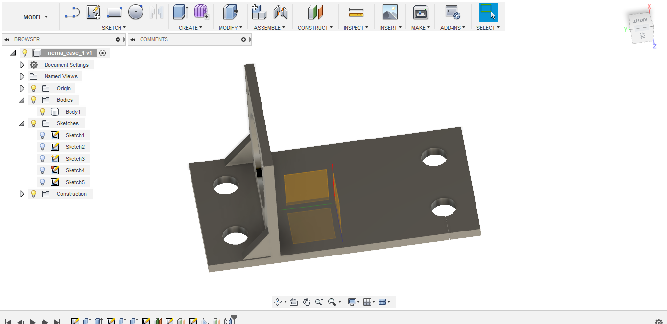 2. Nema-17 Motor Case: The first case was 3D printed after designing in Fusion 360. But 3D printer took lot of time and requirement of Nema-17 case was at all 4 ends. So, I shifted to laser cut
